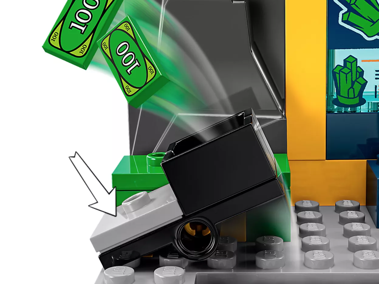 • Этот набор наполнен яркими игровыми сценариями, которые заинтересуют детей: используйте катапульту с переключателем, «взрывайте» тюремные двери и уходите от погони.