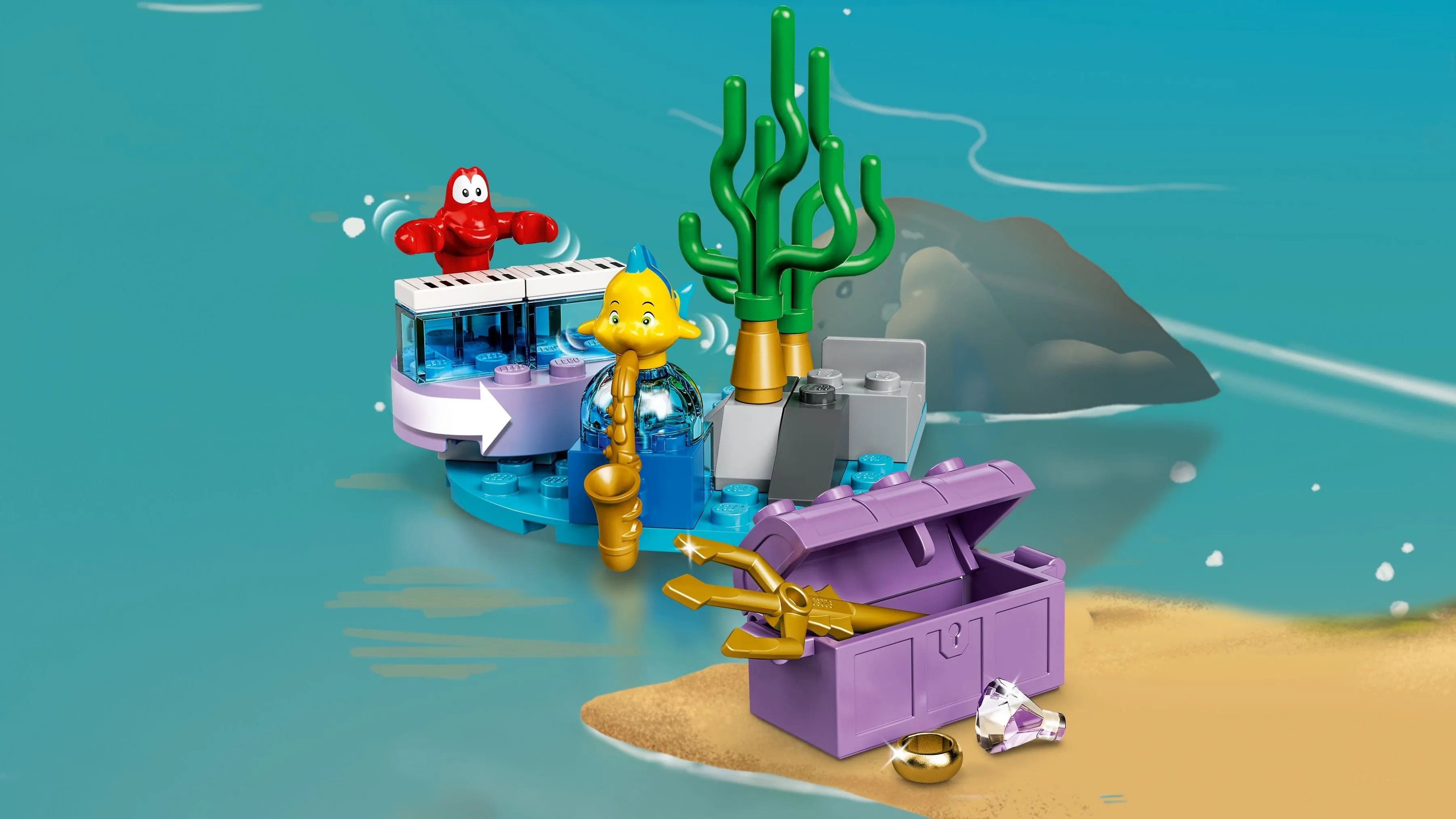 • Минифигурки Ариэль и Эрика: В набор входят минифигурки Ариэль и принца Эрика, которые могут отправиться в плавание, танцевать на палубе или наблюдать за морскими видами. Ариэль можно нарядить в платье или в русалочий хвост, что делает игру ещё более разнообразной.