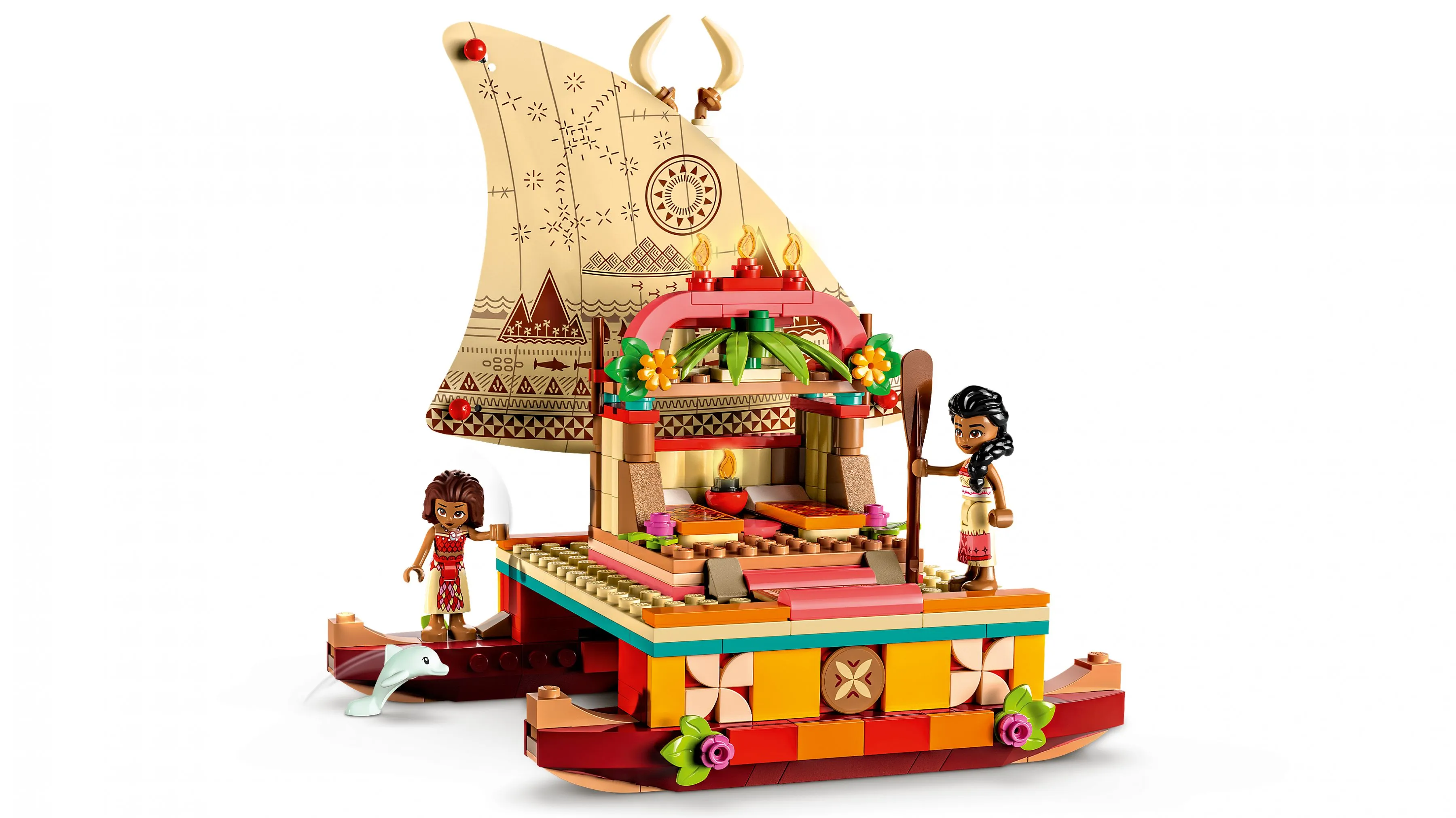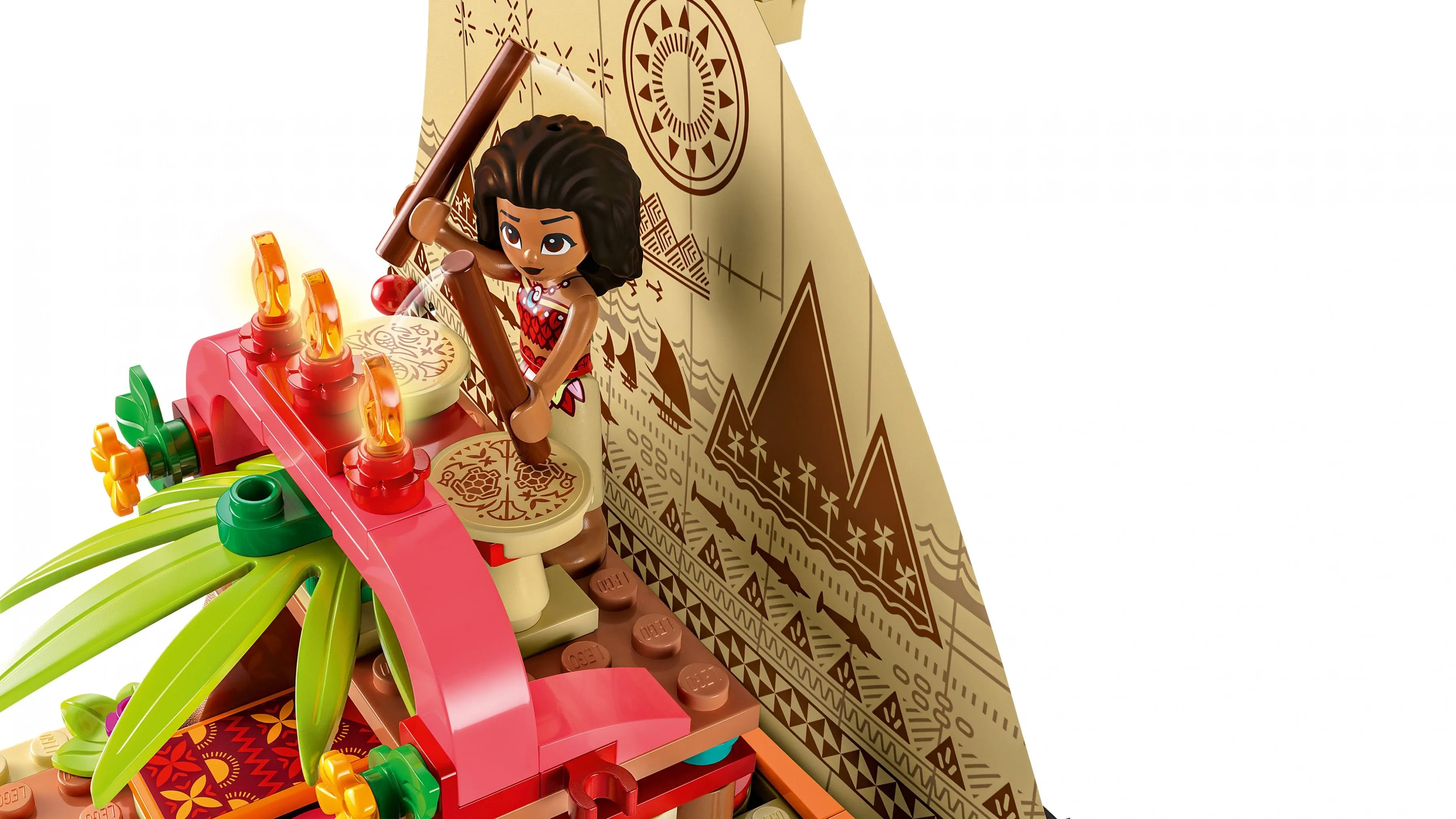 Набор Лодка-путешественник Моаны погружает детей в атмосферу дальних плаваний и приключений, где они могут разыгрывать сцены из мультфильма или придумывать свои собственные истории о храброй героине и её друзьях.