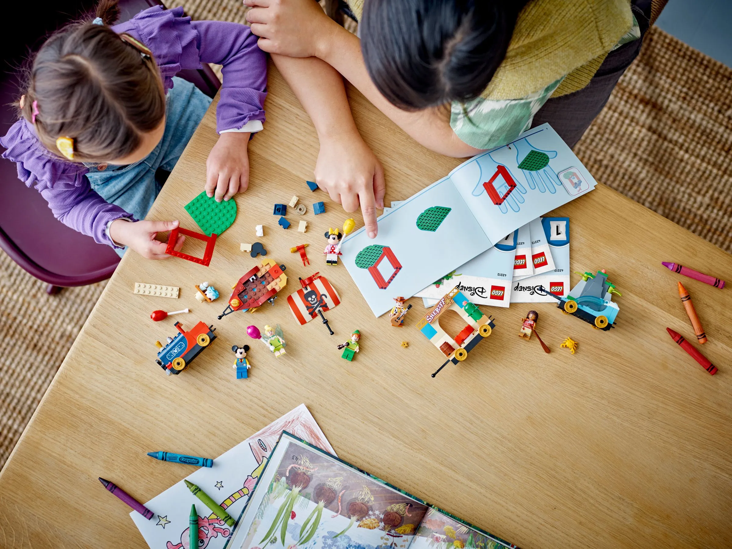 Набор Праздничный поезд Диснея включает четыре вагончика, каждый из которых оформлен в уникальном стиле, посвященном любимым диснеевским персонажам. Этот комплект идеально подходит для того, чтобы воссоздать атмосферу праздника и добавить немного магии в игровые сессии детей.