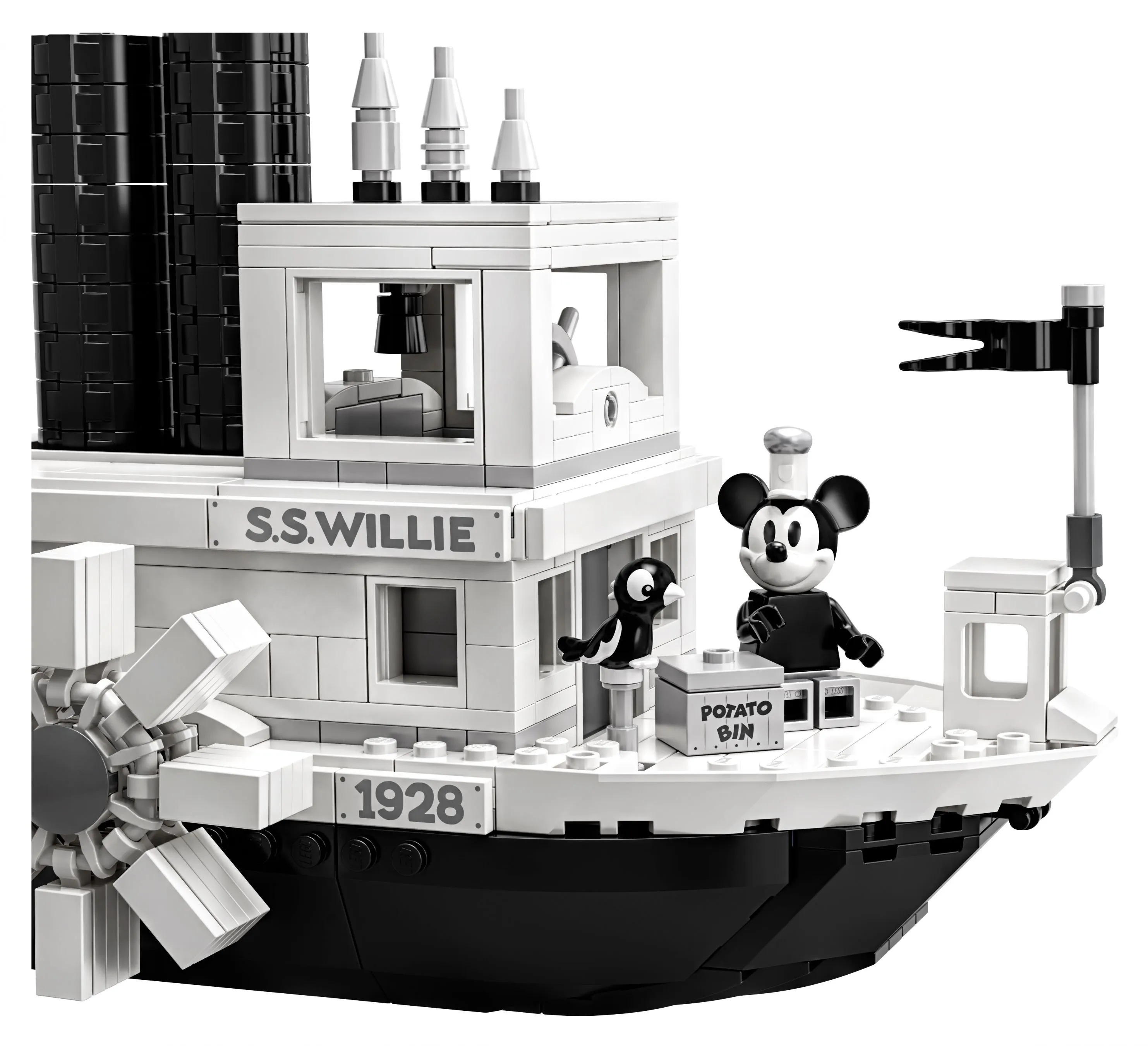 С этим набором вы сможете воссоздать знаменитую сцену из черно-белого мультфильма, который впервые появился на экранах в 1928 году. LEGO Disney 21317 Пароходик Вилли позволяет построить знаменитый пароход, на котором Микки Маус отправился в свое первое путешествие.