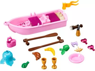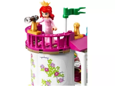 Hilf Arielle, den Zauberfluch zu brechen! Die verzauberte Meerjungfrau hat ihre Stimme eingetauscht, um mit dem anmutigen Prinz Eric zusammen zu sein. Nur ein Kuss seiner königlichen Lippen kann den Zauber brechen! Geh mit Arielle und ihrer wahren Liebe auf eine romantische Bootsfahrt, auf der sie Bekanntschaft mit einem Frosch schließen und am Baum in der einsamen Lagune rasten. Ihr könnt ein herrliches Picknick am Meer machen oder ein romantisches Abendessen im Speisesaal des Palastes genießen. Wenn Arielle wissen möchte, was in der Welt die sie zurückgelassen hat passiert, kann sie mit dem Teleskop vom Balkon aus einen Blick dorthin werfen. Enthält 2 Spielfiguren: Arielle und Prinz Eric.