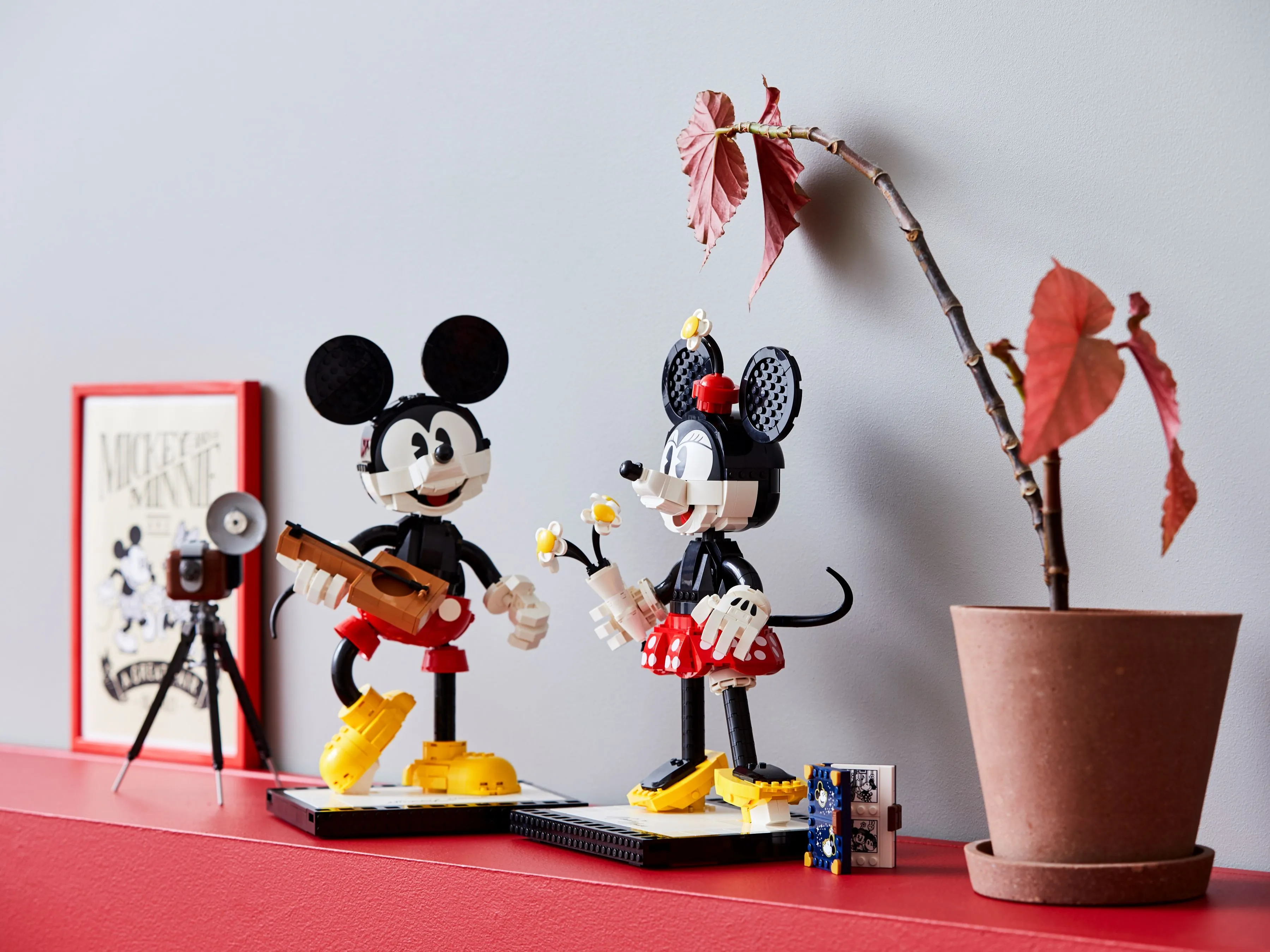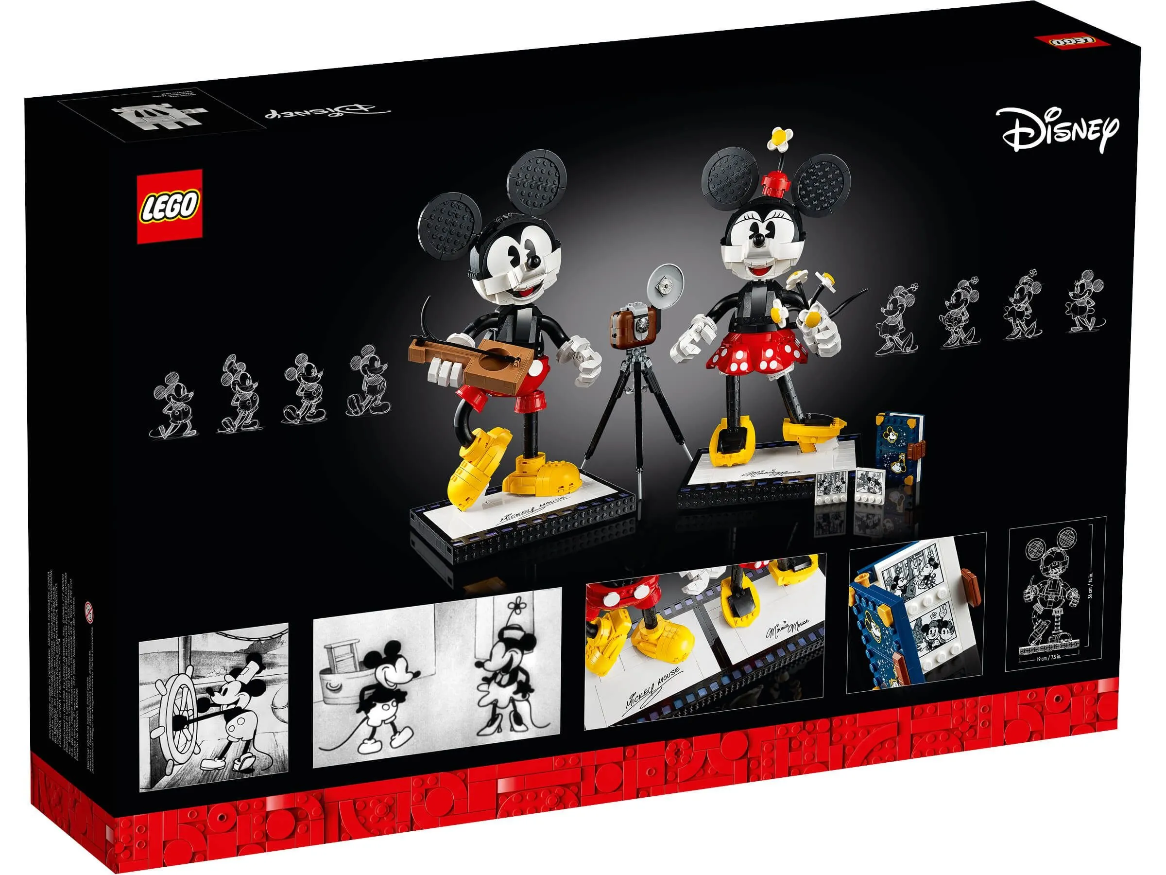Набор представляет собой две крупномасштабные модели, которые воссоздают образы Микки Мауса и Минни Маус в ретро-стиле, характерном для первых мультфильмов. С помощью LEGO деталей создано множество мелких деталей, таких как одежда, аксессуары и выразительные позы, что придаёт моделям особое очарование и реалистичность. В собранном виде фигуры достигают высоты более 36 см, что делает их впечатляющим украшением любого интерьера.