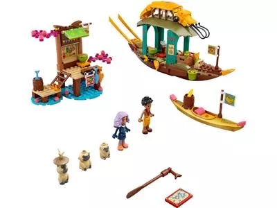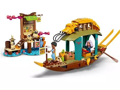 Фанаты мультфильма «Райя и последний дракон» будут в восторге от конструктора LEGO Disney Princess 43185 Лодка Буна. Вместе с Сису в человеческом обличье отправьтесь в увлекательное плавание. Умный капитан Бун управляет большим судном - и средство для побега, и плавучее кафе. Забросьте в трюм несколько креветок, пока онги грузят на лодку бананы, которыми собираются торговать. Онги очень похожи на обезьян и сомов, поэтому такие суетливые. Чтобы отправиться за покупками, пришвартуйте лодку. Как только вернетесь из магазина, проверьте, что припрятано в люке и подготовьтесь к приключениям. В классный игровой набор входит лодка с украшениями в виде креветок, весло, красочная платформа, люк, маленькая лодка, причал с рыночной площадью и дополнительные аксессуары. Добавьте немного воображения, и приключения станут реальностью. Конструктор с минифигурками - лучший подарок ребенку на 6 лет на день рождения, 8 Марта или Новый год.