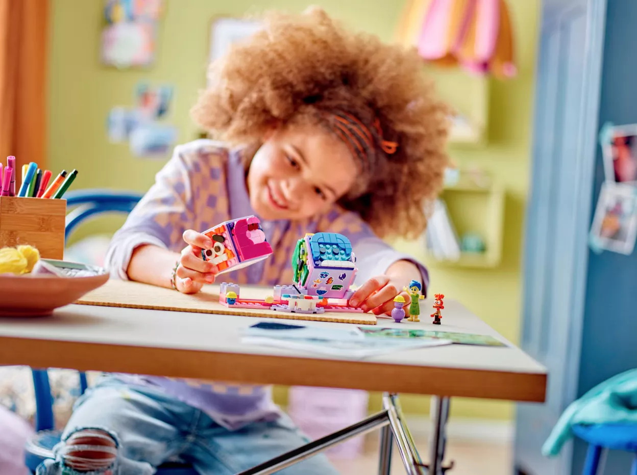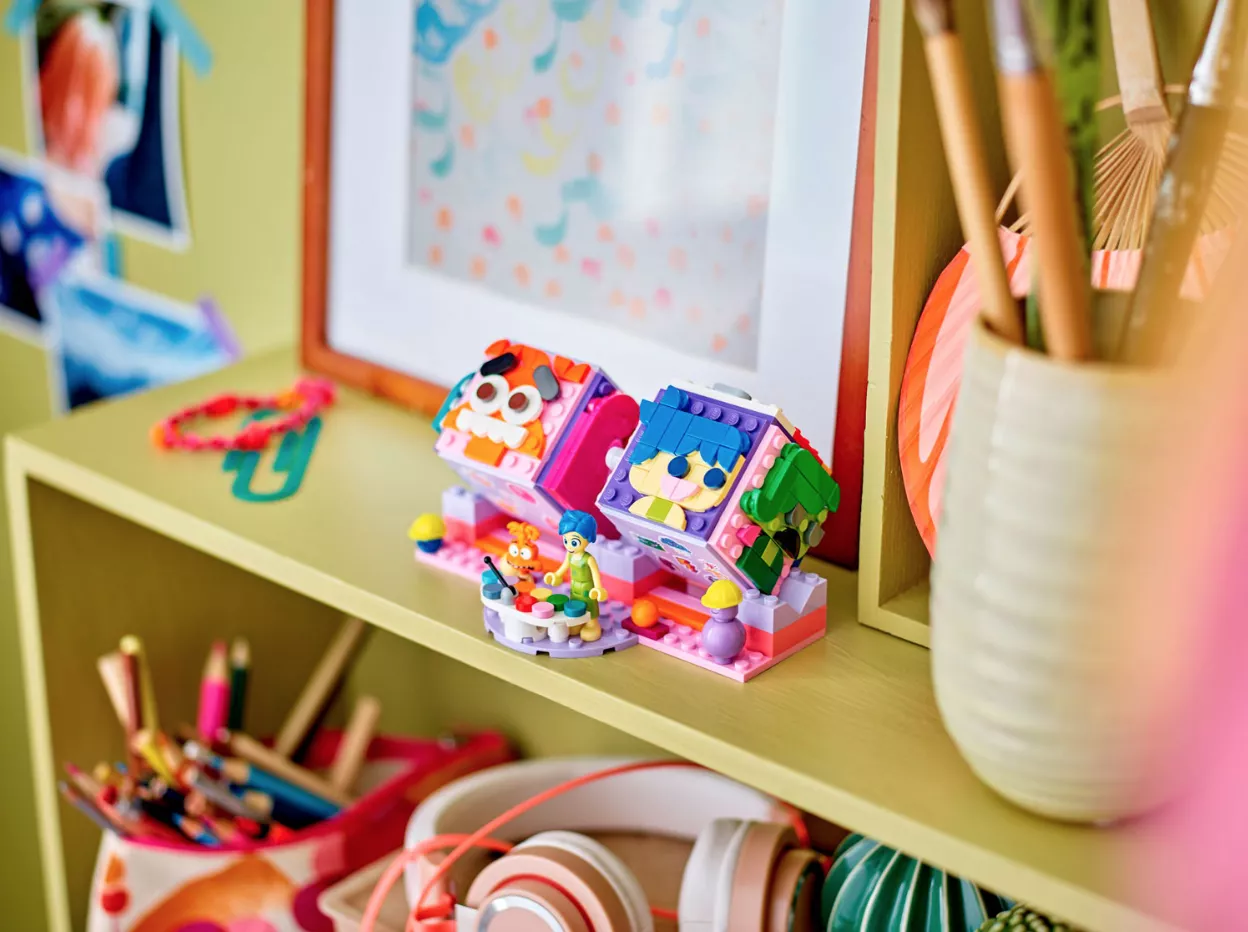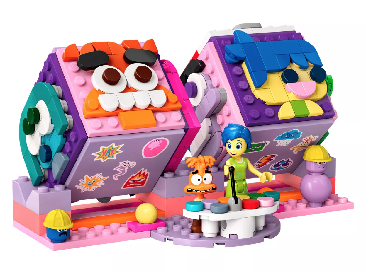 • Сборная игрушка для настроения — в этот креативный сборный набор входят 2 кубика настроения, 9 сменных пластин настроения, подставка и фигурки мини-куколок Радости и Тревоги LEGO Disney от Pixar.
