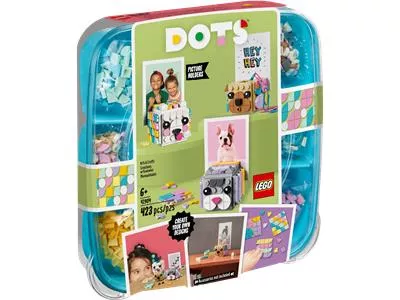 Подарите детям возможность стать дизайнерами предметов интерьера с помощью набора для творчества LEGO DOTS 41904 Подставки для фото «Животные». Этот творческий конструктор позволит ребенку самостоятельно создать элементы декора и украсить ими свою комнату. В набор по сбору подставок для фото входят 3 куба средних размеров, оснащенные держателями для фотографий, и разноцветные плитки, с помощью которых создается изображение мордочки животного: кота, собаки, енота и других, которые могут быть придуманы ребенком. Для удобства хранения и сортировки деталей предназначен входящий в набор специализированный лоток. Меняя дизайн подставки для фото в зависимости от настроения или размещенной на ней фотографии, ребенок сможет в полной мере проявить свои творческие способности. Такой набор станет незаменимым помощником для развития ловкости и воображения юного творца и идеально подойдет в качестве подарка на день рождения, Новый год или другой праздник.