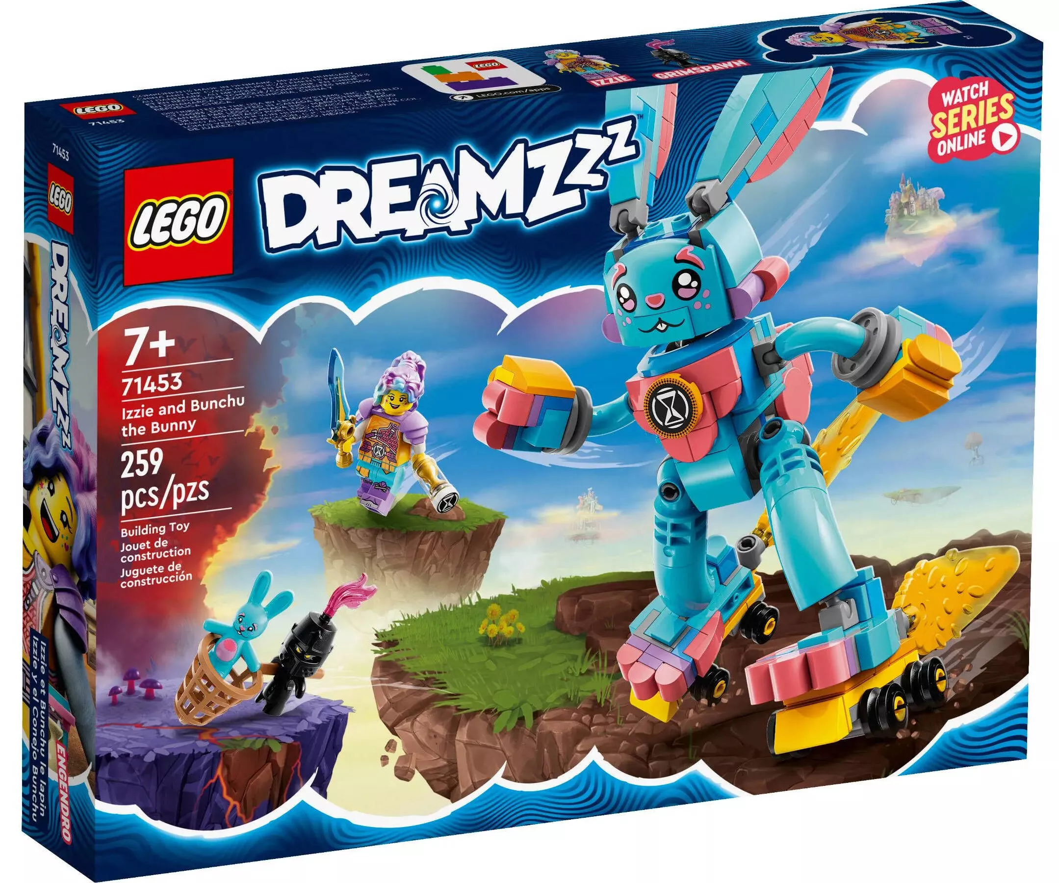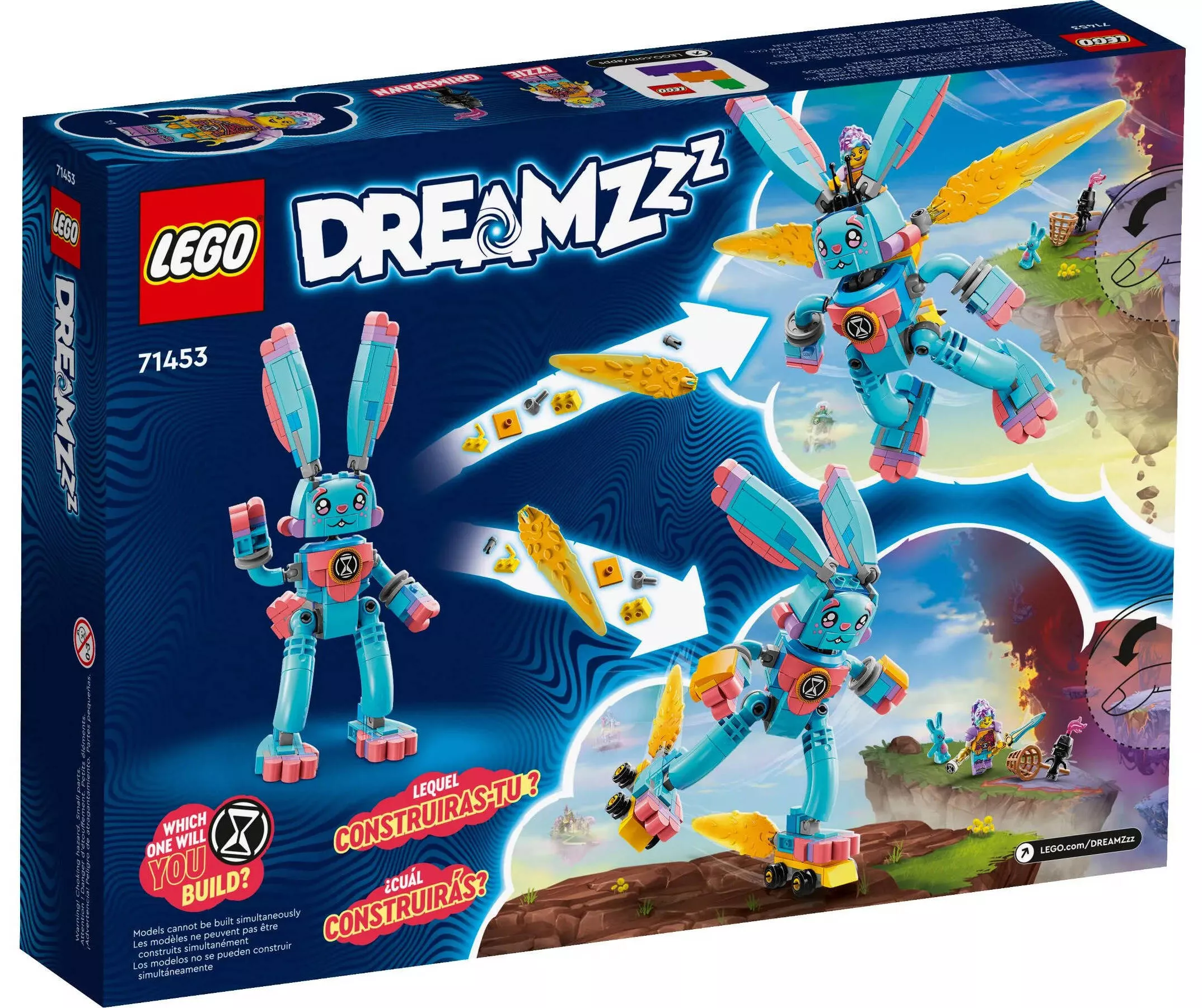 LEGO DREAMZzz 71453 Иззи и кролик Банчу – это увлекательный набор, который позволяет детям погрузиться в волшебный мир снов и фантазий. Главные герои набора – Иззи и её верный друг, гигантский кролик Банчу, с которым они отправляются в невероятные приключения. Этот набор вдохновлён сюжетом о том, как дети путешествуют по миру снов, преодолевая трудности и сражаясь с ночными кошмарами.