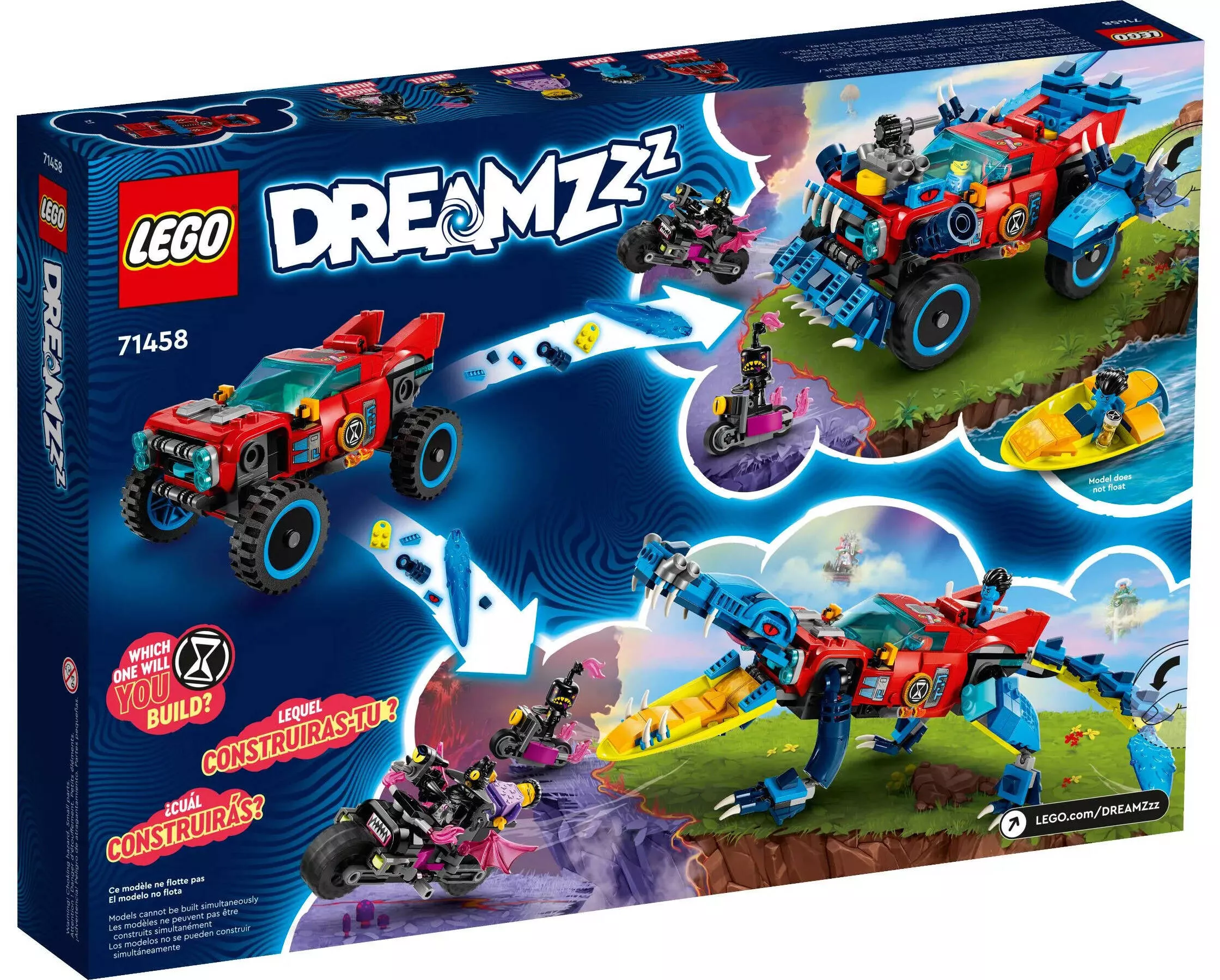 LEGO DREAMZzz 71458 Крокодил Автомобиль – это отличный выбор для детей, которые любят необычные транспортные средства и динамичные приключения. Этот набор развивает воображение и творческие способности, позволяя детям создавать собственные истории и приключения в волшебном мире DREAMZzz. Он также прекрасно сочетается с другими наборами серии, что открывает еще больше возможностей для игры и фантазии.