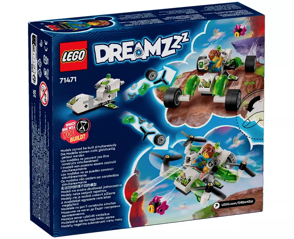 Дети в возрасте от 7 лет могут окунуться в удивительный мир LEGO DREAMZzz с игрушечной внедорожной машиной Матео (71471). Основанный на захватывающем телешоу, набор позволяет детям помочь героям Матео и Z-Blob вернуть волшебные песочные часы, собрав игрушечное транспортное средство в виде дюнного багги или квадрокоптера. Предлагая 2 захватывающих варианта сборки, эта экшн-игрушка побуждает детей раскрыть свое воображение и выбрать собственные приключения. В режиме багги это надежный внедорожник с вращающимися колесами, а в режиме квадрокоптера - компактный летательный аппарат с мощными задними двигателями. Набор оживлен персонажами LEGO DREAMZzz, включая детализированную минифигурку Матео, которая поставляется в комплекте со стрелком. В нем также представлены фигурки Гримспауна и липкого приятеля Матео Z-Blob, так что дети могут проявить творческий подход и создать приключение своей мечты. Детская игрушечная машинка – Мальчики и девочки старше 7 лет дают волю своему воображению с этим внедорожником LEGO DREAMZzz Матео, который включает в себя фигурки героев и предлагает 2 различных варианта строительства 2 способа игры – Творческие дети могут выбрать свое собственное приключение, создав экшн-игрушку в виде дюнного багги или квадрокоптера Строить и перестраивать – В режиме багги это надежный внедорожник с вращающимися колесами, а в режиме квадрокоптера - компактный летательный аппарат с мощными задними двигателями. Подарки для детей – Этот игровой набор - фантастический подарок для мальчиков и девочек, которые могут использовать его для создания перестраиваемого транспортного средства. Автомобиль LEGO – Этот небольшой набор LEGO для любителей автомобилей создан по мотивам телешоу LEGO DREAMZzz Персонажи LEGO DREAMZzz – Набор приключенческих игрушек включает минифигурку Матео, а также фигурки Z-Blob и Grimspawn Наборы LEGO DREAMZzz – Познакомьтесь с другими фантастическими игрушками для мальчиков и девочек из линейки LEGO DREAMZzz, которые позволяют детям погрузиться в мир грез и познакомиться с персонажами LEGO DREAMZzz Размеры – Конструктор включает 94 детали, а в режиме багги его высота превышает 2 дюйма (5 см), 4,5 дюйма (12 см) в длину и 3,5 дюйма (9 см) в ширину