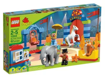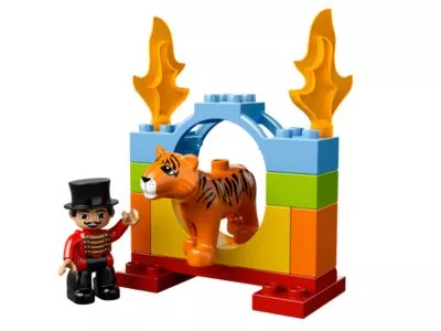 Tretet näher, tretet ein! Der Große LEGO DUPLO Zirkus ist in der Stadt! Kauf dir eine Eintrittskarte für das Zirkuszelt und sei dabei, wenn die Artistin sich auf der Trapezschaukel durch die Lüfte schwingt und der Clown mit seinem Schirm balanciert. Vorhang auf für das große Finale mit Elefant, Pferd und Tiger! Mit 3 DUPLO Figuren: Zirkusdirektor, Hochseilartistin und Clown.