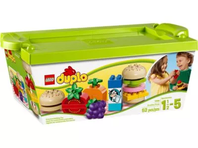 Mit dem LEGO DUPLO Set Lustiges Picknick kann Ihr Kind seiner Kreativität beim Zusammenstellen vieler leckerer Snacks freien Lauf lassen! Aus den bunten Brot-, Fleisch-, Ketchup-, Salat- und vielen anderen Steinen werden köstliche Sandwiches, Burger und Snacks gezaubert – natürlich serviert mit feinster DUPLO Milch! Der Deckel der Aufbewahrungsbox dient zudem als Tablett und die im Set enthaltenen Sandwich-Rezepte liefern viele Ideen, mit denen Sie gleich loslegen können.• Sandwiches und Burger können zusammengestellt werden und werden zusammen mit Milch, Früchten und vielen weiteren Belägen und köstlichem Zubehör serviert• Der Deckel der Aufbewahrungsbox kann auch als Tablett verwendet werden• Baue dir mit den verschiedenen Elementen immer wieder neue und andere Sandwiches• Wer kann wohl das größte Sandwich bauen?• LEGO DUPLO Produkte sind bunt, geeignet für kleine Hände und machen Spaß• Der Milchkarton ist über 8 cm hoch, 3 cm breit und 3 cm tief• Das höchste Sandwich ist über 12 cm hoch, 6 cm breit und 6 cm tief• Das Brötchen ist über 4 cm hoch, 6 cm breit und 6 cm tief