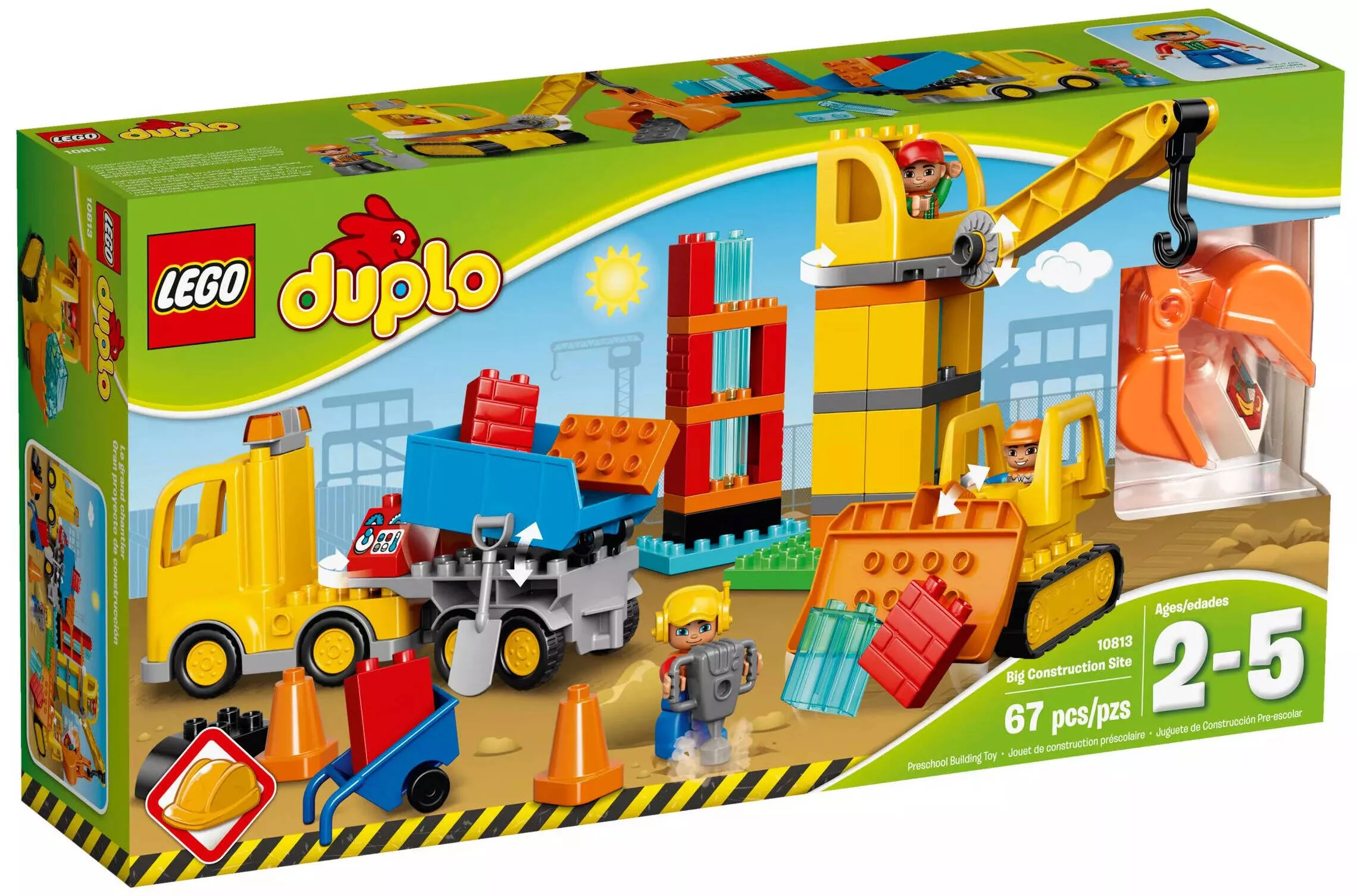Набор LEGO DUPLO 10813 Большая стройплощадка включает в себя 67 крупных и удобных для маленьких рук деталей и предлагает сборку различных строительных машин и сооружений. Этот набор станет отличным дополнением к коллекции LEGO DUPLO вашего ребенка, позволяя воссоздавать захватывающие сцены строительства и развивать воображение.