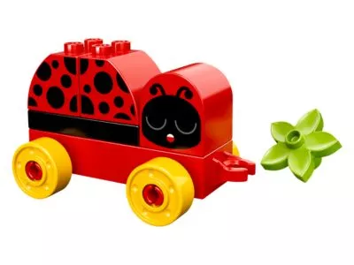 Яркая и красивая Божья коровка покорит сердце малыша! Собрать ее нетрудно, и уже скоро можно придумывать разные игры! Поверните лицо набок - и можно укладывать коровку спать, а когда она проснется, отправляйтесь на прогулку. Колесика позволят быстро добраться до полянки, где растет цветок - играйте и с ним, чтобы коровке не было скучно.