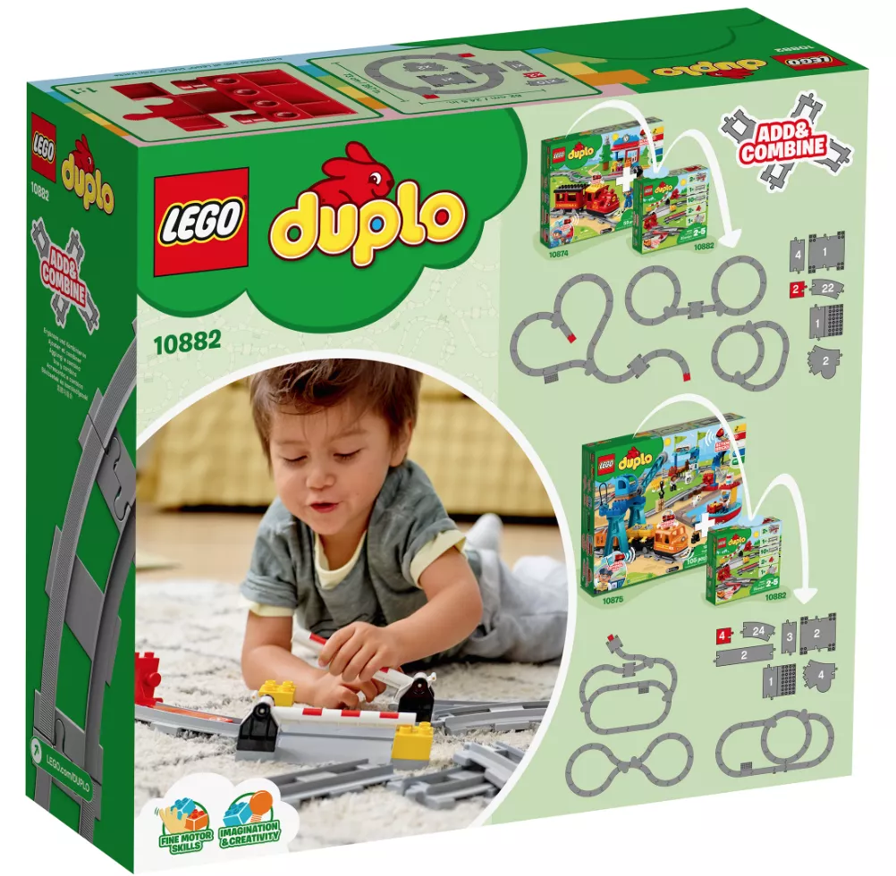 Расширить кругозор ребенка поможет конструктор LEGO DUPLO Town 10882 «Рельсы». Интересный набор поможет понять принцип их работы, а с помощью переключателей можно с легкостью изменять направление или же разыграть ситуацию из жизни на железнодорожном переезде. Оригинальный конструктор отлично дополняется станцией, поездом, длинными путями. Это дает возможность полностью окунуться в мир железной дороги. Ребенку понравится игрушка с рельсами, с ней он будет придумывать новые истории и сюжеты. В процессе игры прекрасно развиваются воображение и мышление, а также улучшается мелкая моторика.