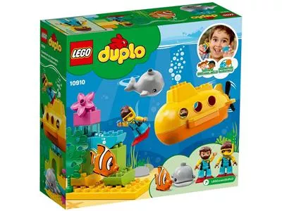 С конструктором LEGO DUPLO Town 10910 «Путешествие субмарины» вместе со своими детьми вы сможете придумывать новые игры и быть частью морских приключений. Представленный набор станет любимой игрушкой, с которой ваши дети не захотят расставаться. С конструктором LEGO DUPLO Town ваши детки полюбят вечерние купания. Этот простой и яркий набор станет источником новых тем для обсуждения и накопления новых знаний - ваши дети будут получать важную информацию в процессе игры. Водный конструктор поможет вашему малышу представить себя настоящим оператором: он даже сможет снять фильм о ките или рыбе на игрушечную камеру. Игрушка с подводной лодкой может плавать в ванной, рыба - пускать под водой пузыри, кит - скользить по поверхности. Юного капитана ждут невероятные приключения! Набор не обязательно нести в ванную: им можно пользоваться и на «суше».