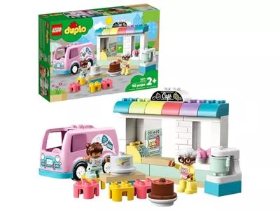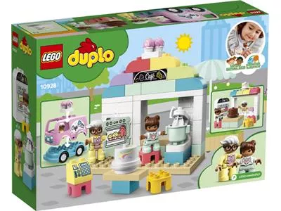 С конструктором LEGO DUPLO Town 10928 «Пекарня» ваш малыш перенесется в настоящую пекарню. Яркий фургон службы доставки и красочное кафе никого не оставят равнодушным. Конструктор с машинкой не требует батареек. С конструктором LEGO DUPLO Town «Пекарня» ваши дети почувствуют себя пекарями. Угостить аппетитными тортами посетителей кафе, на красочном фургоне развезти заказы, накормить водителя фургона вкусным десертом - с таким количеством дел скучать точно не придется. Конструктор с пекарней создан для малышей в возрасте от 2-х лет и старше. С вашей помощью или собственными усилиями ребята смогут воссоздать знакомые им сценки из кафе, магазина или фильма или придумать собственную увлекательную историю.
