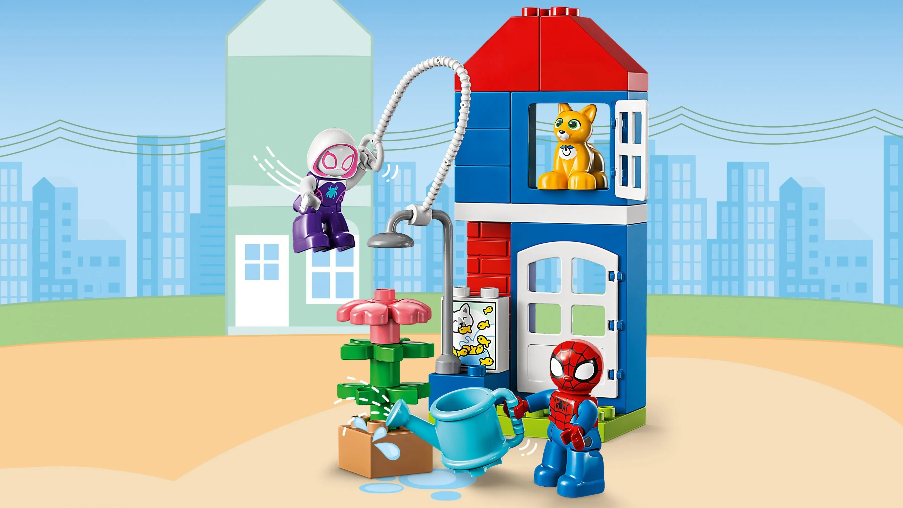 Набор Дом Человека-паука включает элементы для сборки яркого и красочного дома, который может служить и местом для отдыха, и базой для приключений. В комплекте три фигурки: Человек-паук, Паучок и друг Человека-паука – Гвен Стейси. Дом оснащён элементами, которые делают игру ещё интереснее: окнами, которые можно открывать и закрывать, паутиной для перемещений Человека-паука, а также горкой для весёлого катания. Дополнительные аксессуары, такие как игрушечный вертолет и паутина, добавляют игре разнообразия.