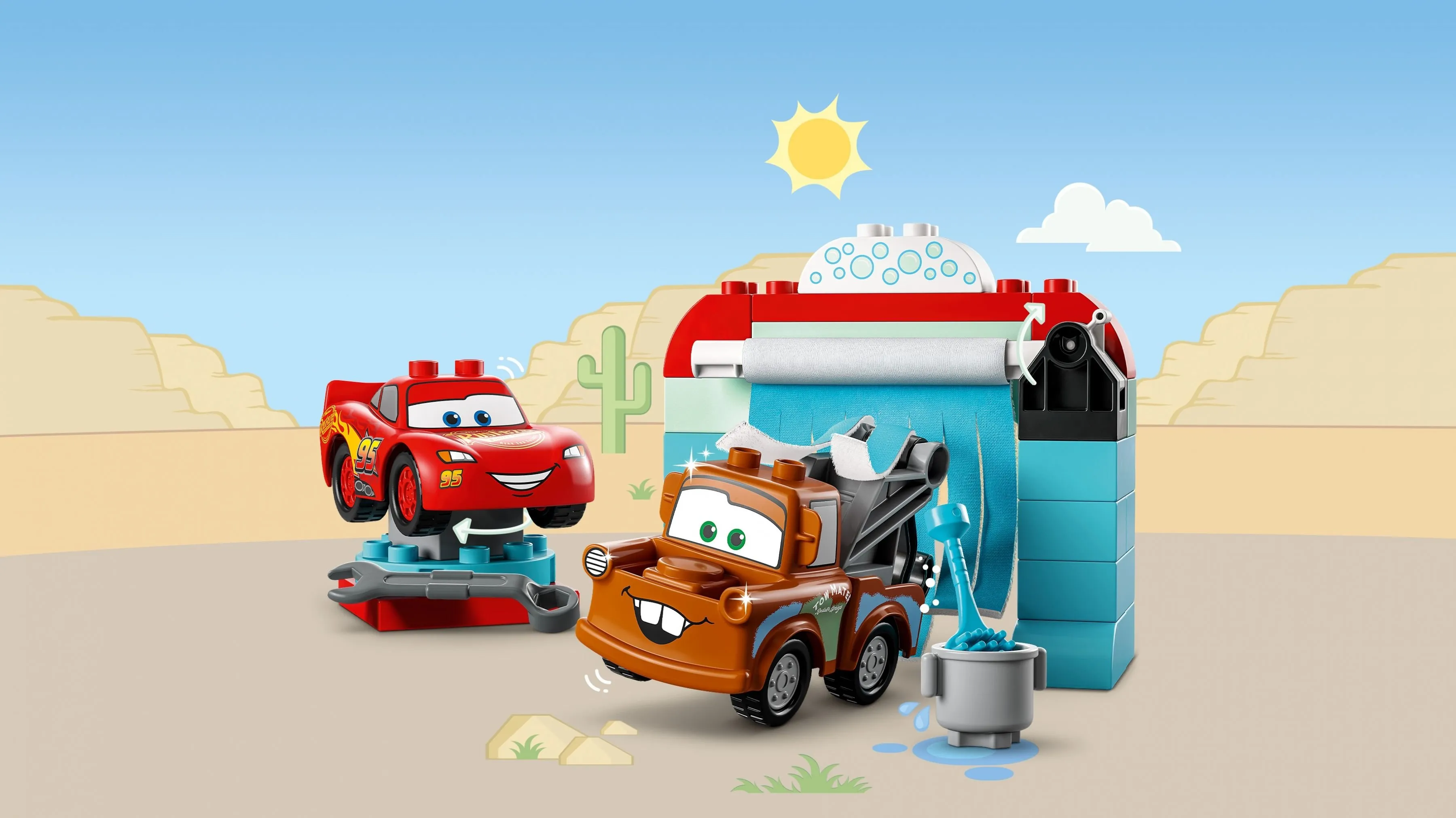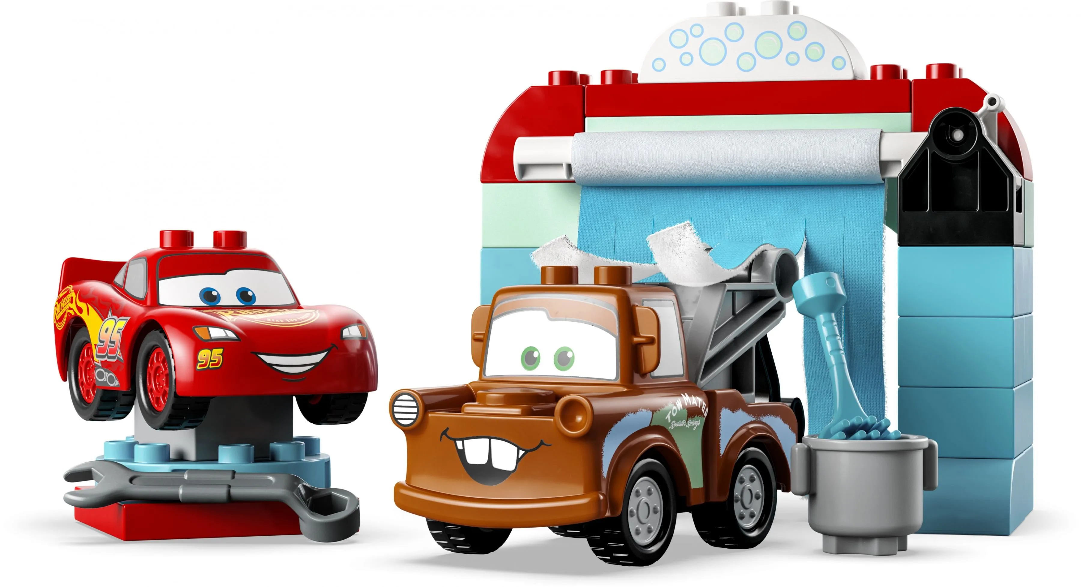 Основные особенности набора LEGO DUPLO 10996 Веселая автомойка Молнии Маккуина и Мэтра: