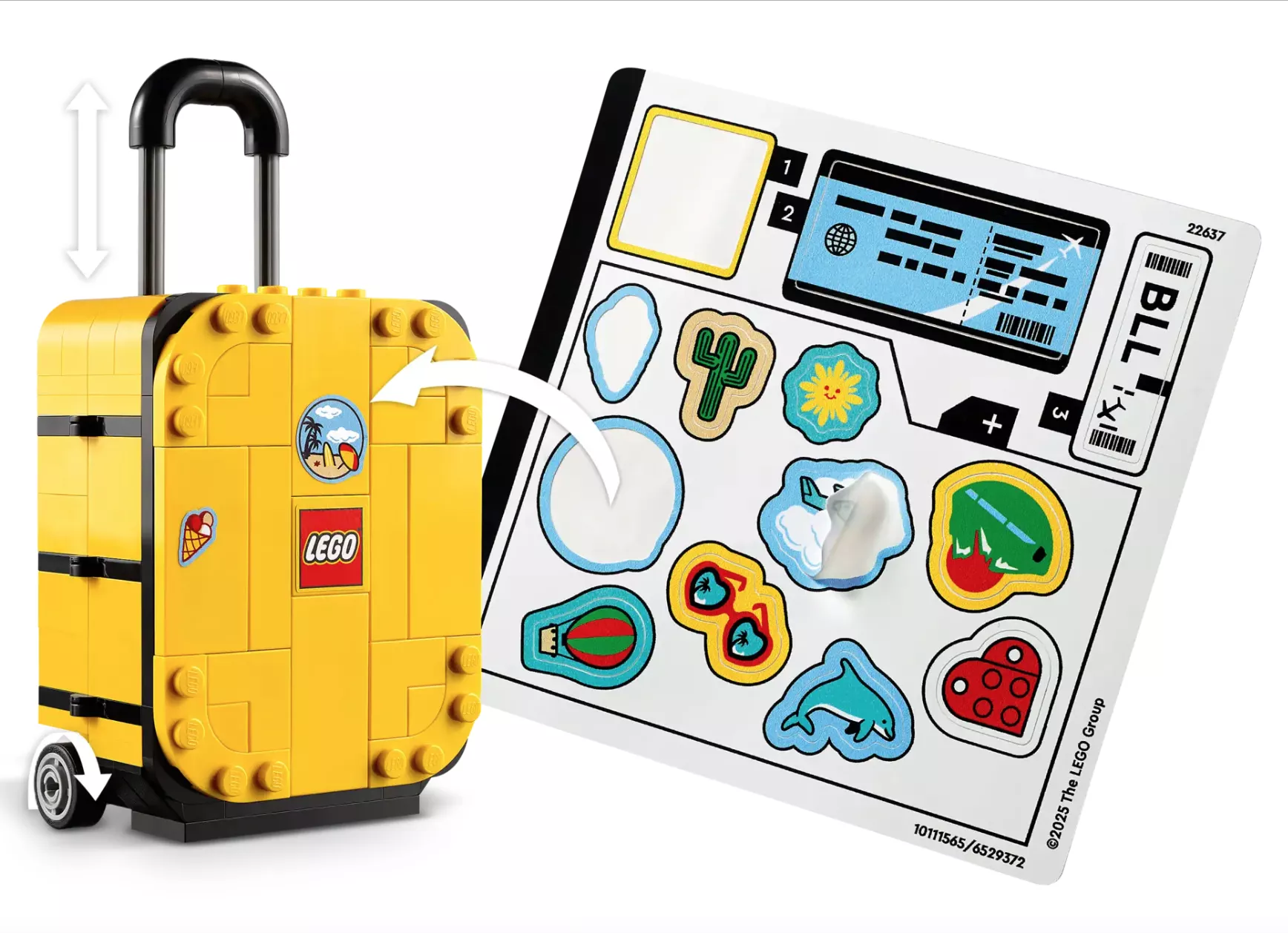 Возьмите свой паспорт и приготовьтесь к приключениям с этим набором для сборки чемодана LEGO Yellow Travel Suitcase (40817). Этот набор, оформленный в стиле отпуска, станет отличным подарком для детей от 7 лет и всех, кто любит путешествовать. Мини-чемоданчик оснащен выдвижной ручкой, работающими колесами и багажной биркой. Откройте чемодан, чтобы положить фотоаппарат, посадочный талон, зубную щетку и паспорт – получайте удовольствие от процесса сборки чемодана! В набор входит лист с забавными наклейками для украшения внешней поверхности чемодана.
