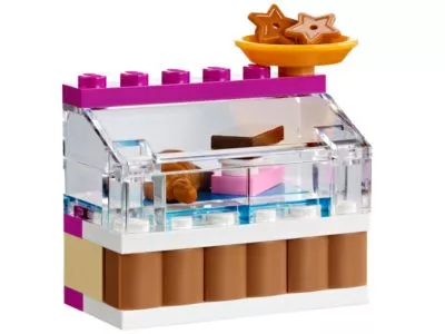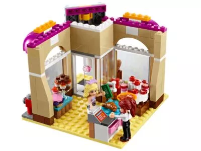 Hilf Mia beim Kuchenbacken in der Bäckerei! Baue das Schild, Vordach und die Auslage dieses süßen Ladens, bevor du ihn eröffnest! Lege Kuchen, Brot, Kekse und Croissant in den Regalen aus! Ein Kunde kommt vorbei und bestellt einen Waldbeerengeburtstagskuchen. Zeit, in die Küche zu gehen, wo jede Menge Lebensmittel und Utensilien auf dich warten. Gib die Mischung in die Schüssel und platziere sie im Ofen, bis der Kuchen fertig ist! Dann kannst du ihn mit Früchten dekorieren und den Preis in die Kasse eingeben. Enthält die Spielfiguren Mia und Danielle