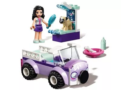 Из деталей, входящих в комплект, можно собрать стол для осмотра заболевших животных, а также автомобиль для их перевозки. Это позволяет устроить игру в ветеринарную клинику, чтобы ребенок больше узнал о полезной профессии врача, ухаживающего за животными. В наборе есть фигурки Эммы и мопса: девочка может осмотреть щенка, поставить диагноз и назначить лечение. Также в комплект входят разнообразные аксессуары: шприц для уколов, бутылочка для кормления заболевшего животного, кость в миске, которую можно дать собаке после того, как она выздоровеет, и расческа.