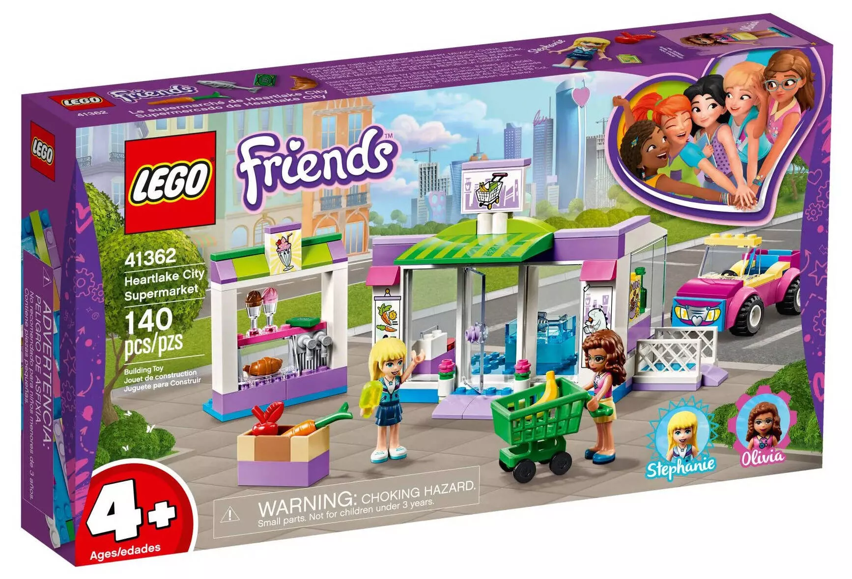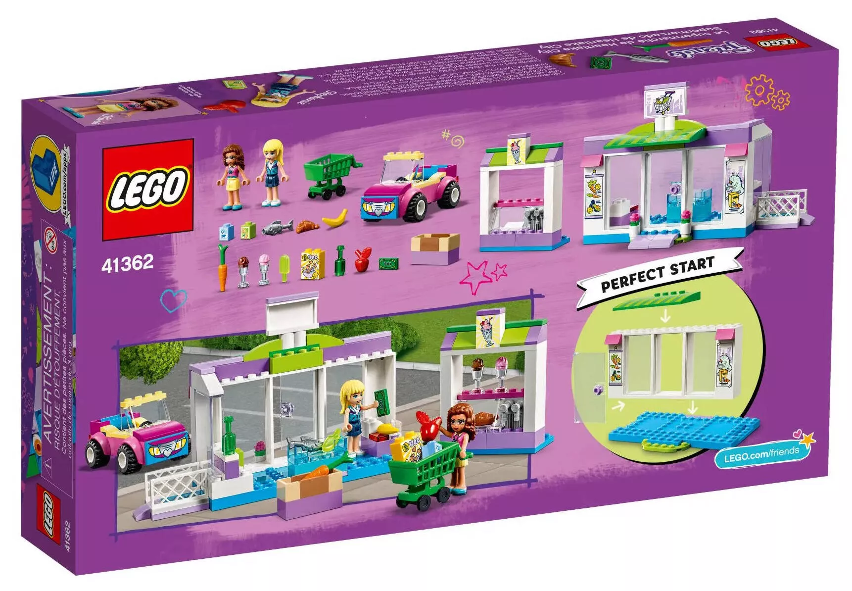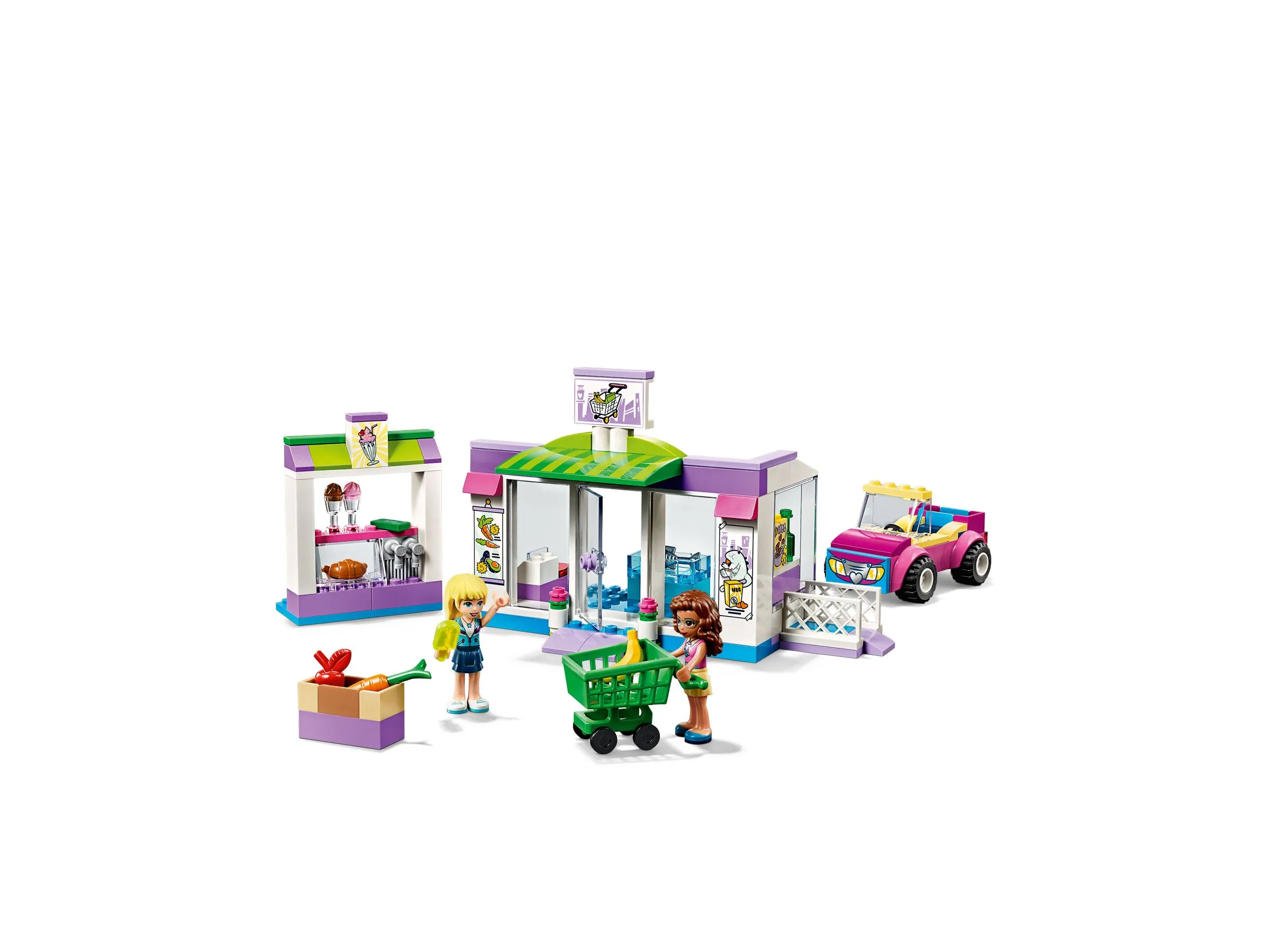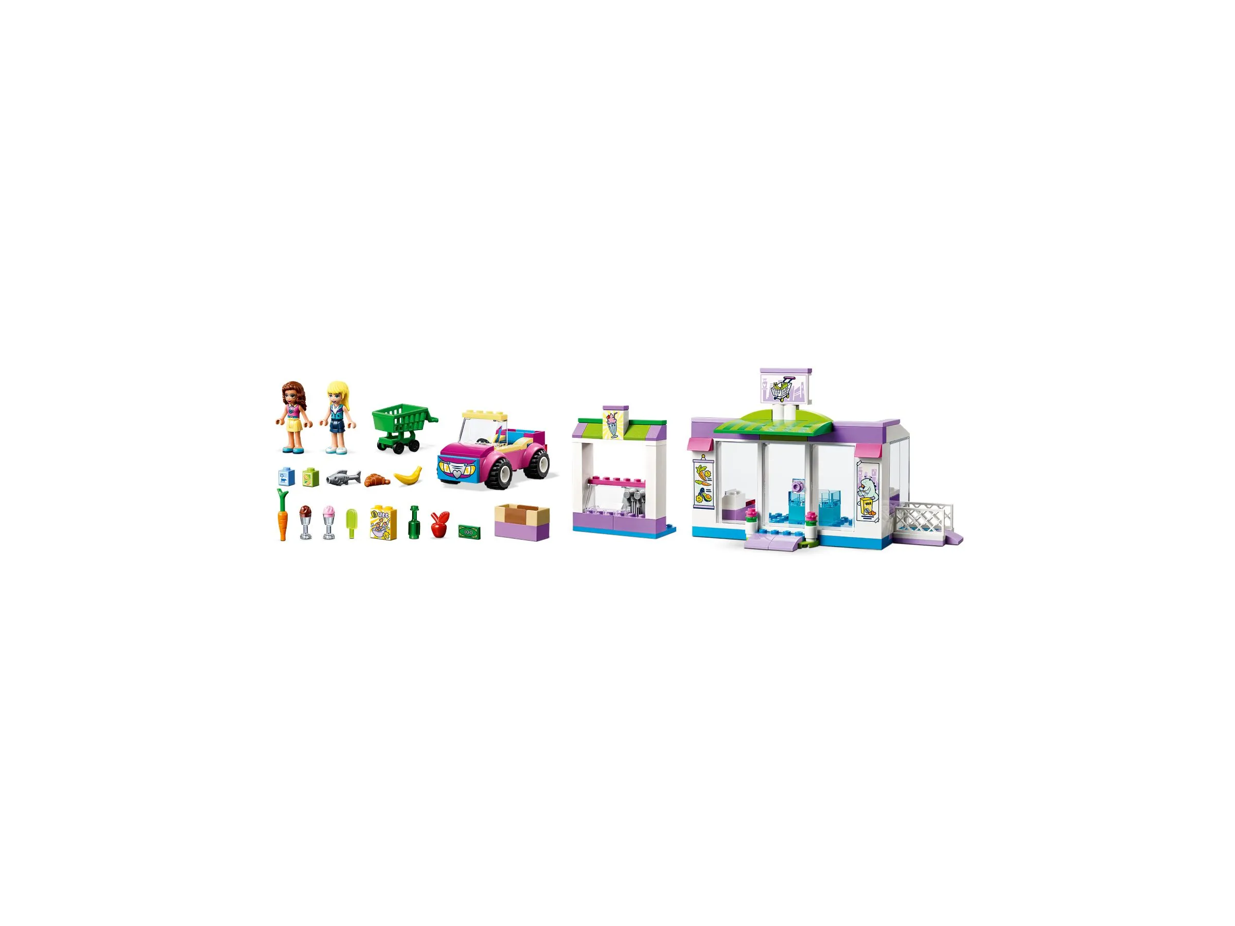 В наборе LEGO Friends 41362 Супермаркет Хартлейк Сити вы найдете все необходимые детали для создания реалистичного супермаркета, где друзья могут совершать покупки. Основные элементы и особенности набора включают:
