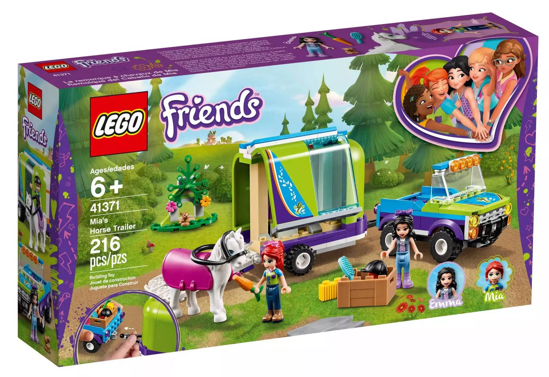 Особенностью набора является его детализированная конструкция, позволяющая легко открыть дверь трейлера для безопасного размещения лошади внутри, а затем так же легко и быстро выгрузить ее по прибытии на место. В комплекте присутствует фигурка Мии, ее подружки Эммы, а также милый кролик и уютный уголок леса, где они могут наслаждаться природой и устроить верховую прогулку на лошади.