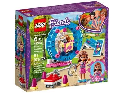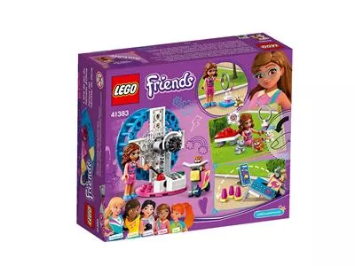 Небольшой конструктор ЛЕГО 41383 «Игровая площадка Оливии с хомячком» станет отличным подарком ребенку на день рождения, Новый год, 1 сентября или другой праздник. Из него можно быстро собрать вращающееся колесо, в котором закреплен мотоцикл. В мотоцикл можно посадить фигурку хомячка, и создастся впечатление, будто бы при вращении колеса зверюшка едет по его внутренней стороне.