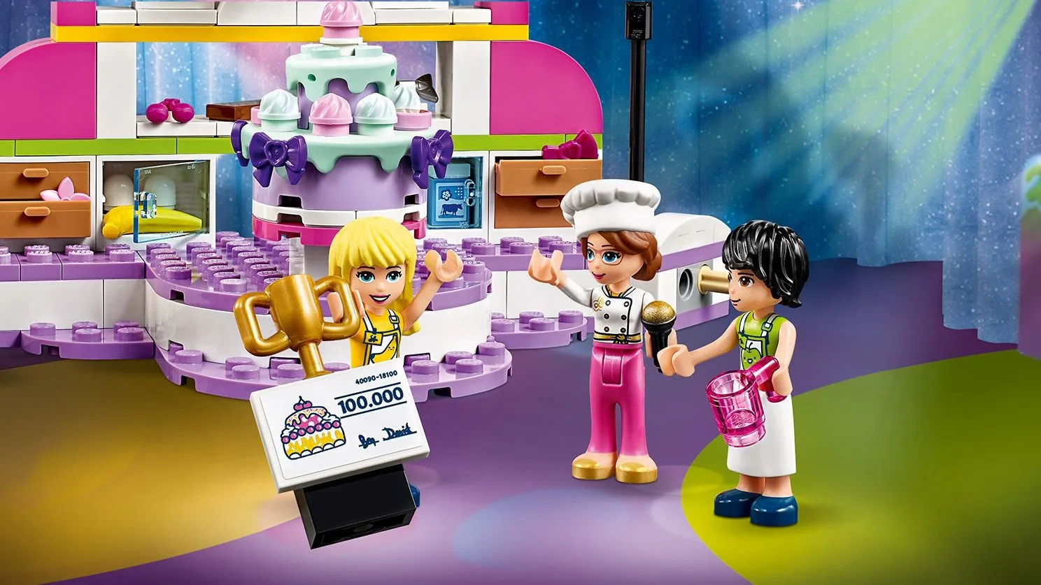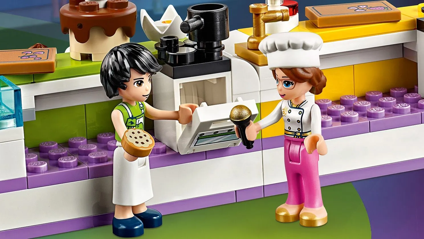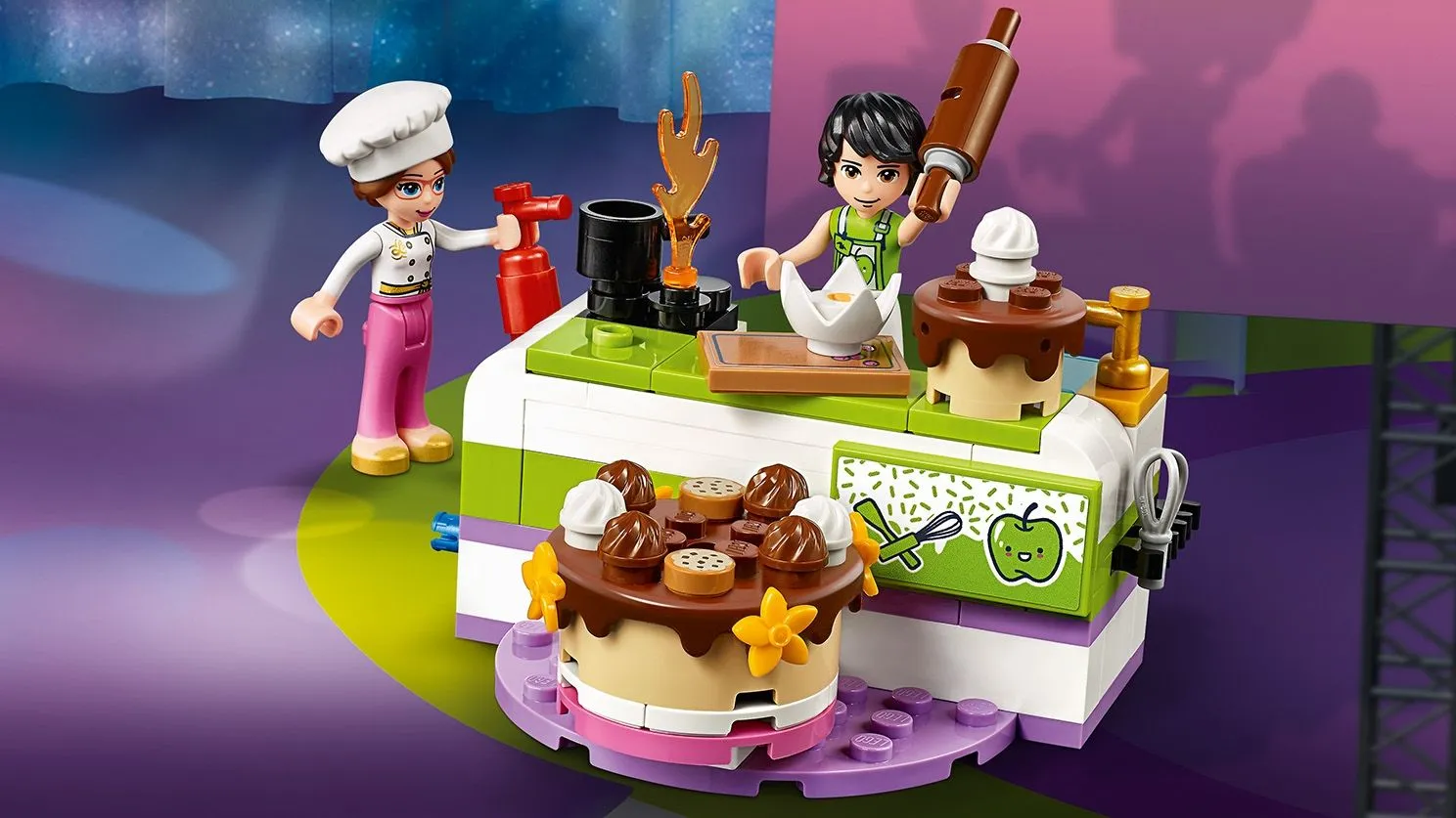 LEGO Friends 41393 Соревнование кондитеров – это увлекательный и красочный набор, который позволяет вам воссоздать захватывающее кондитерское соревнование в Хартлейк Сити. Этот набор идеально подходит для поклонников серии LEGO Friends и коллекционеров, стремящихся пополнить свою коллекцию уникальными моделями и минифигурками. С его помощью вы сможете разыгрывать сцены кулинарных конкурсов и создавать потрясающие кондитерские изделия.