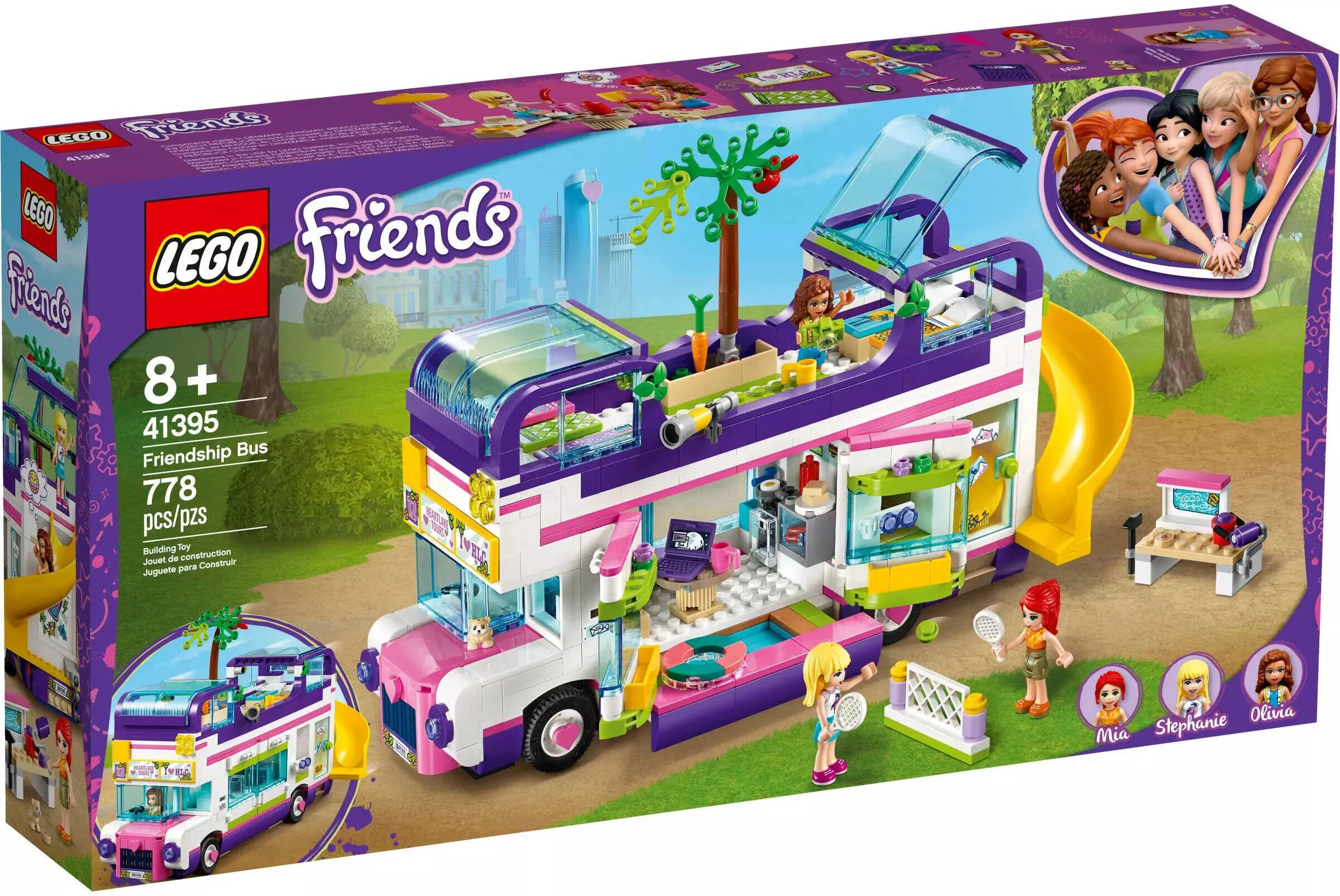 Набор LEGO Friends 41395 Автобус для друзей предназначен для детей от 8 лет и старше. Он включает в себя 778 деталей, что позволяет построить не только сам автобус, но и множество других интересных объектов. Дети могут развивать свою фантазию, придумывая различные сценарии для игры.