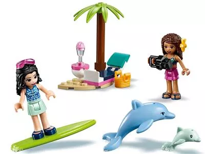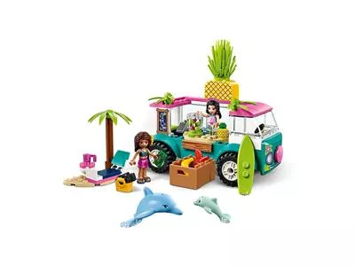 Из конструктора собираются машинка, оборудованная игрушечной бытовой техникой, и кусочек пляжа. Фургон может отправиться на пляж, где Андреа будет принимать солнечные ванны и кататься в море на доске для виндсерфинга, входящей в набор, а Эмма станет обслуживать покупателей. В ее распоряжении есть разнообразные аксессуары, в том числе фрукты для приготовления освежающего и полезного сока.