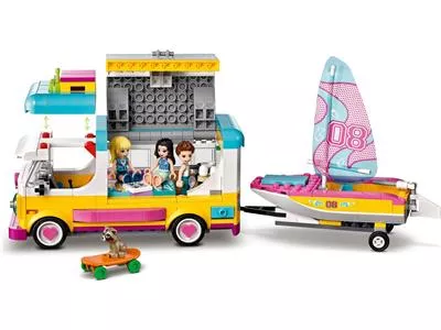 Этот красочный дом на колесах полон деталей, которые смогут исследовать дети, а из ящика у него на крыше можно достать множество аксессуаров. Передняя крыши снимается для легкого доступа в кабину, а основная крыша крепится на петлях, чтобы детям легче было достать спальные мешки для лагеря на открытом воздухе. На лодке LEGO есть руль и подвижный парус для реалистичных парусных приключений, и распоряжении детей — сцена с горным озером, где можно припарковать дом на колесах и исследовать природу. Тут даже есть игрушечный енот, который подружится с малышами.