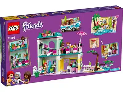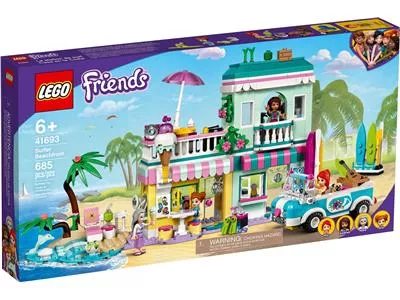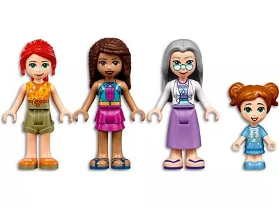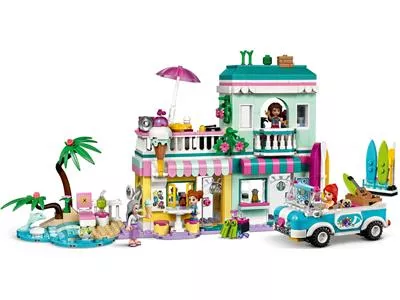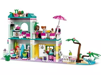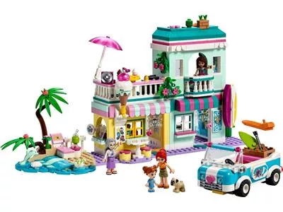 В двухэтажном здании есть магазин мороженого с террасой на крыше, магазин по прокату пляжного снаряжения, а также квартира и огород бабушкии Мии из LEGO Friends. В набор входит крутой автомобиль с открытым верхом, куда Андреа и Миа смогут погрузить свои доски и укатить в поисках прибоя. На пляже они могут покататься на волнах и поиграть с игрушечными дельфином и черепахой. Как и все наборы LEGO Friends, этот содержит множество аксессуаров, вдохновляющих на творческие рассказы. Игрушечная гитара, проигрыватель пластинок и солнцезащитный крем — лишь некоторые из элементов набора, помогающих детям на пути к фантастическим приключениям во время отпуска.