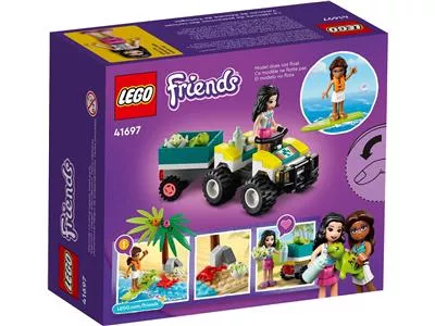 Окунись в необычное путешествие по спасению черепах! Набор Lego Friends «Вездеход для спасения черепах» состоит из двух минифигурок девочек, автомобиля, элемента ландшафта с пальмой, а также двух черепах и краба.