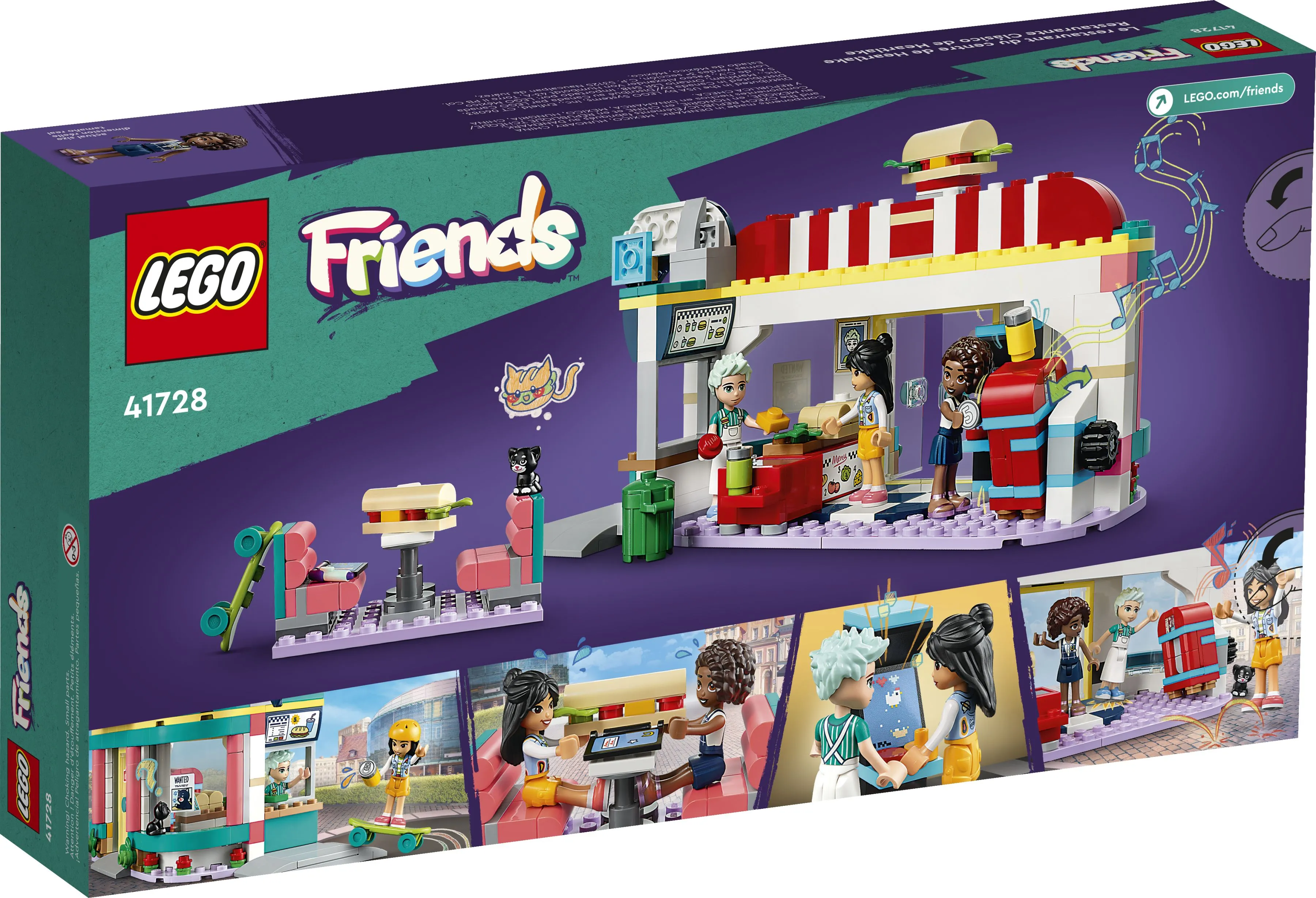 LEGO Friends 41728 Закусочная в центре Хартлейк – это яркий и интересный набор, который позволяет детям создать собственное кафе в центре города Хартлейк. В этой закусочной можно разыгрывать различные сценки из повседневной жизни, включая готовку вкусных блюд, встречи с друзьями и весёлые трапезы. Этот набор идеально подходит для юных строителей, которые любят сюжетные игры и городские приключения.