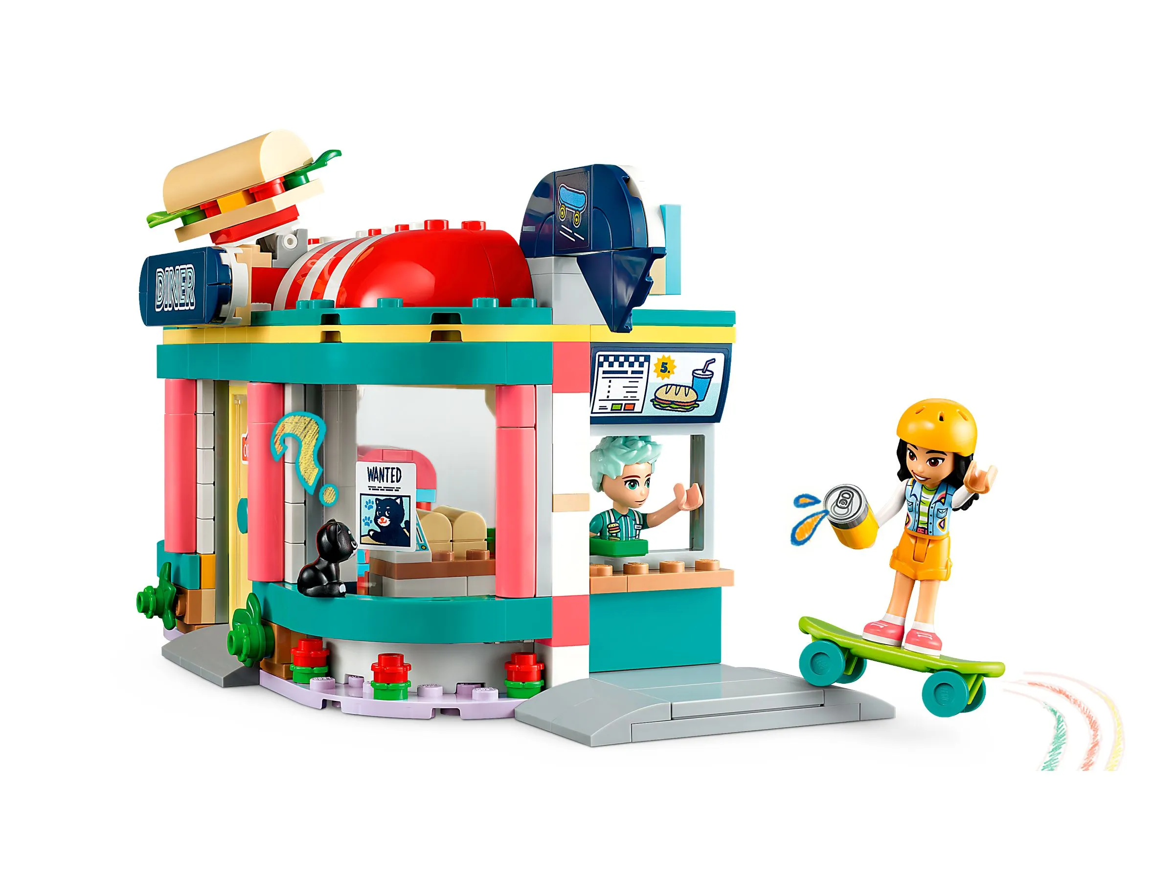 Набор Закусочная в центре Хартлейк из серии LEGO Friends предлагает множество деталей для создания стильного кафе с настоящей атмосферой закусочной. Это идеальное место для встреч персонажей LEGO Friends, где можно весело провести время за вкусной едой.