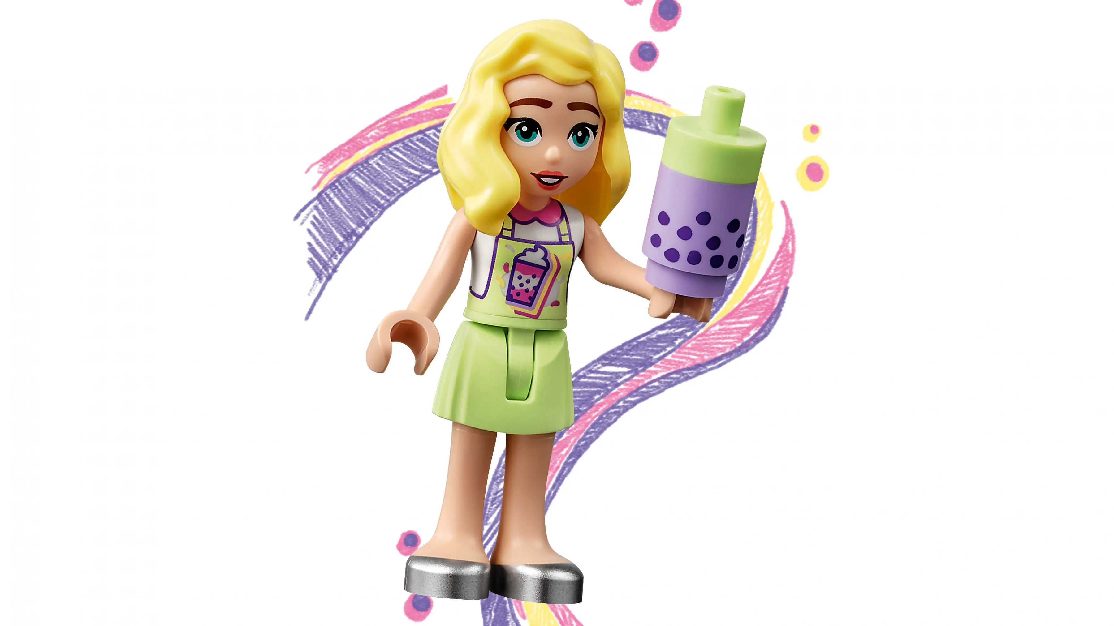 Набор Мобильный магазин Бабл Ти предлагает множество игровых возможностей, вдохновляя детей на создание своих историй о бизнесе и дружбе. С этим передвижным киоском дети смогут обслуживать жителей Heartlake City, готовить разнообразные напитки и путешествовать по городу.