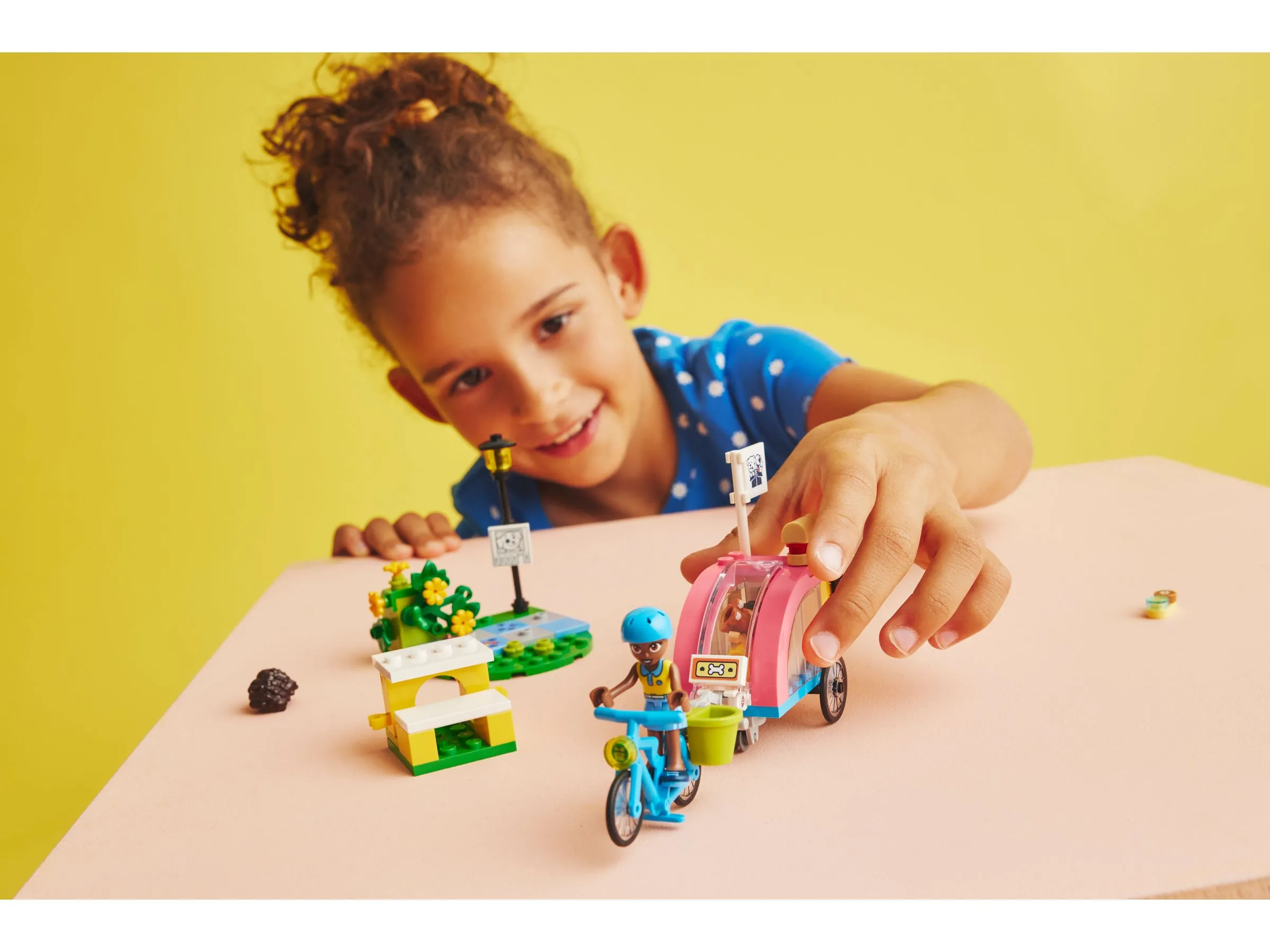 Набор Спасательный велосипед для собак из серии LEGO Friends предоставляет возможность детям разыгрывать сценарии спасения животных и помощи им в трудных ситуациях, создавая добрые истории и приключения. Это отличная игра для тех, кто мечтает о заботе о питомцах.