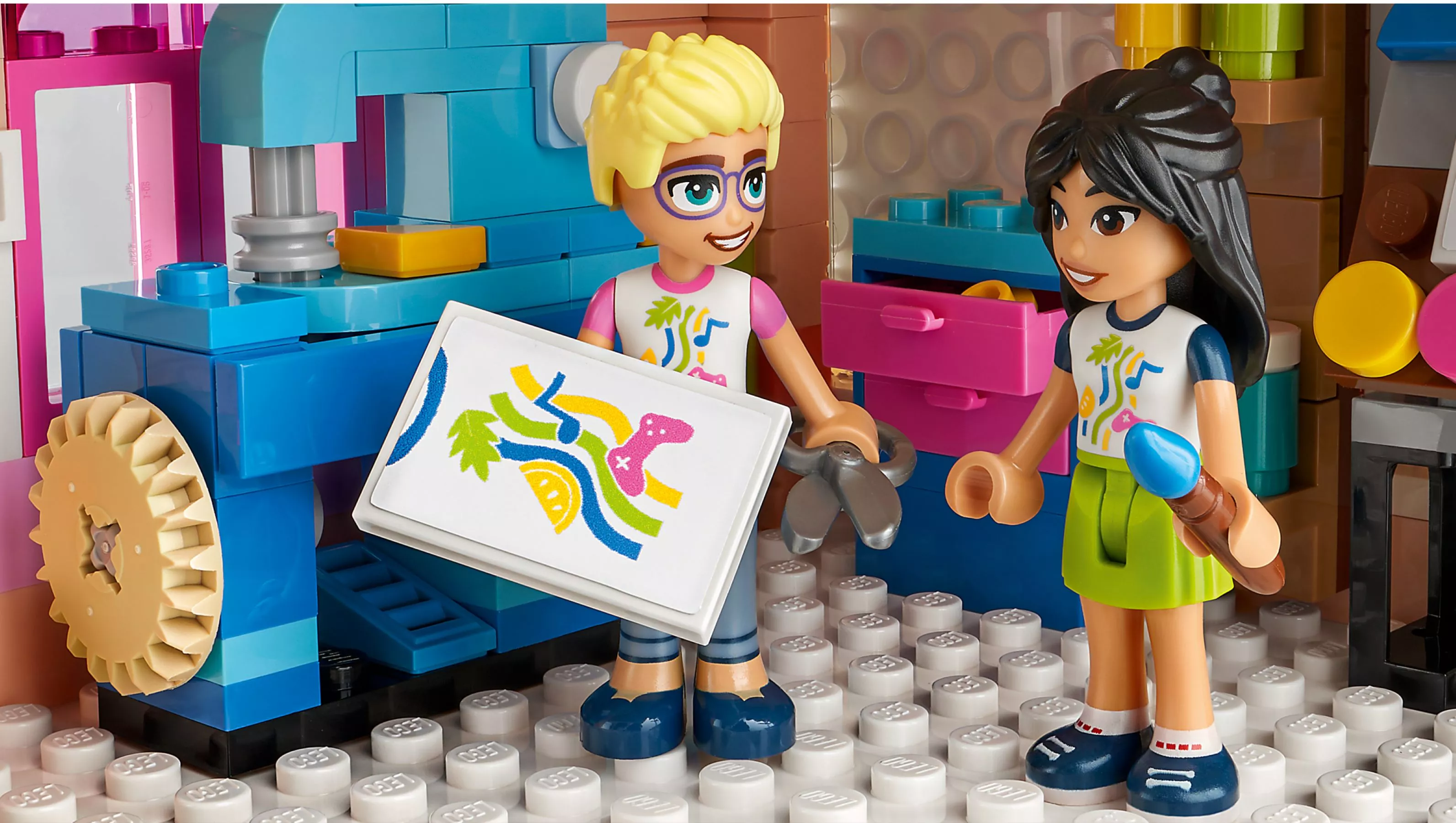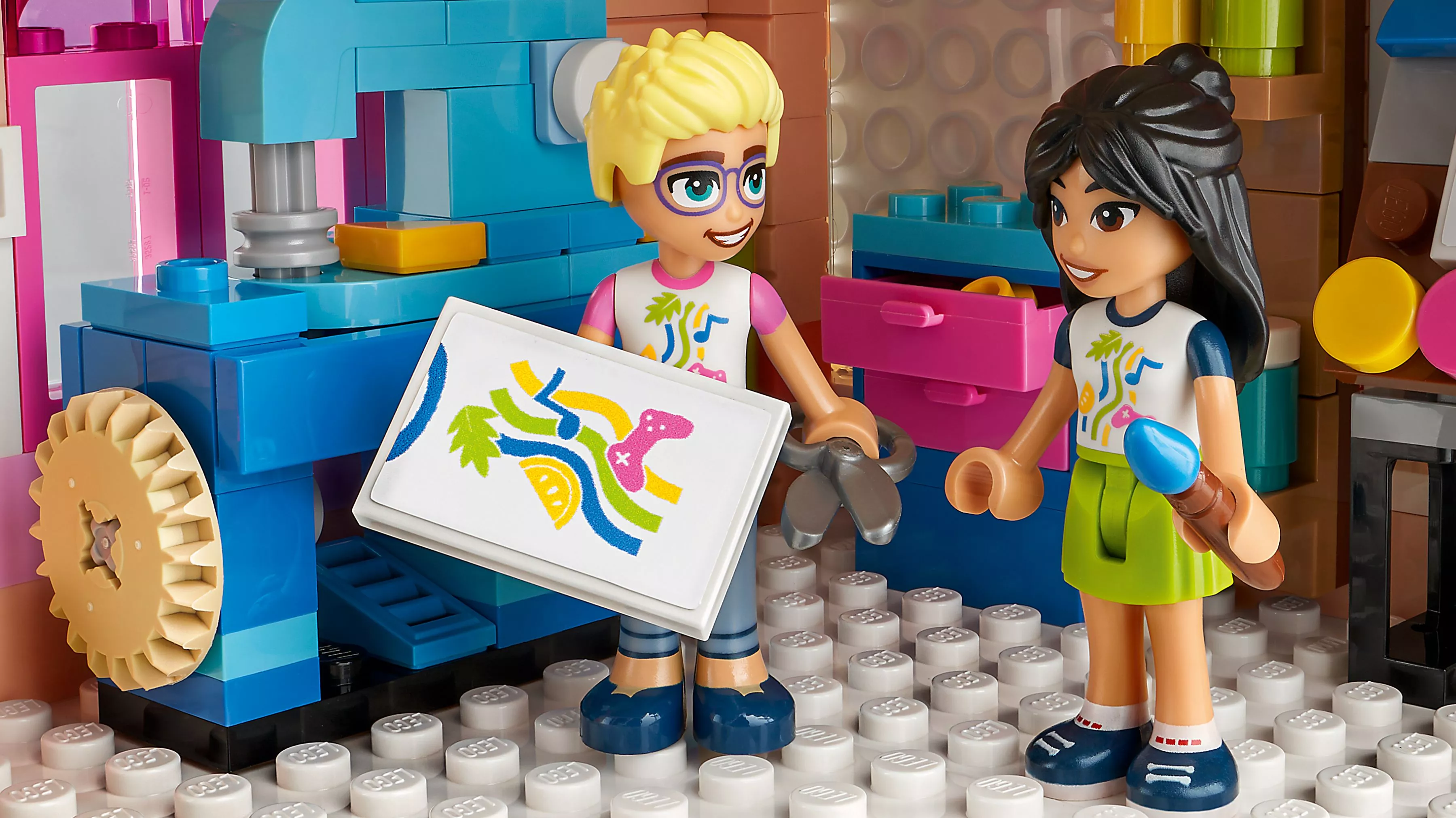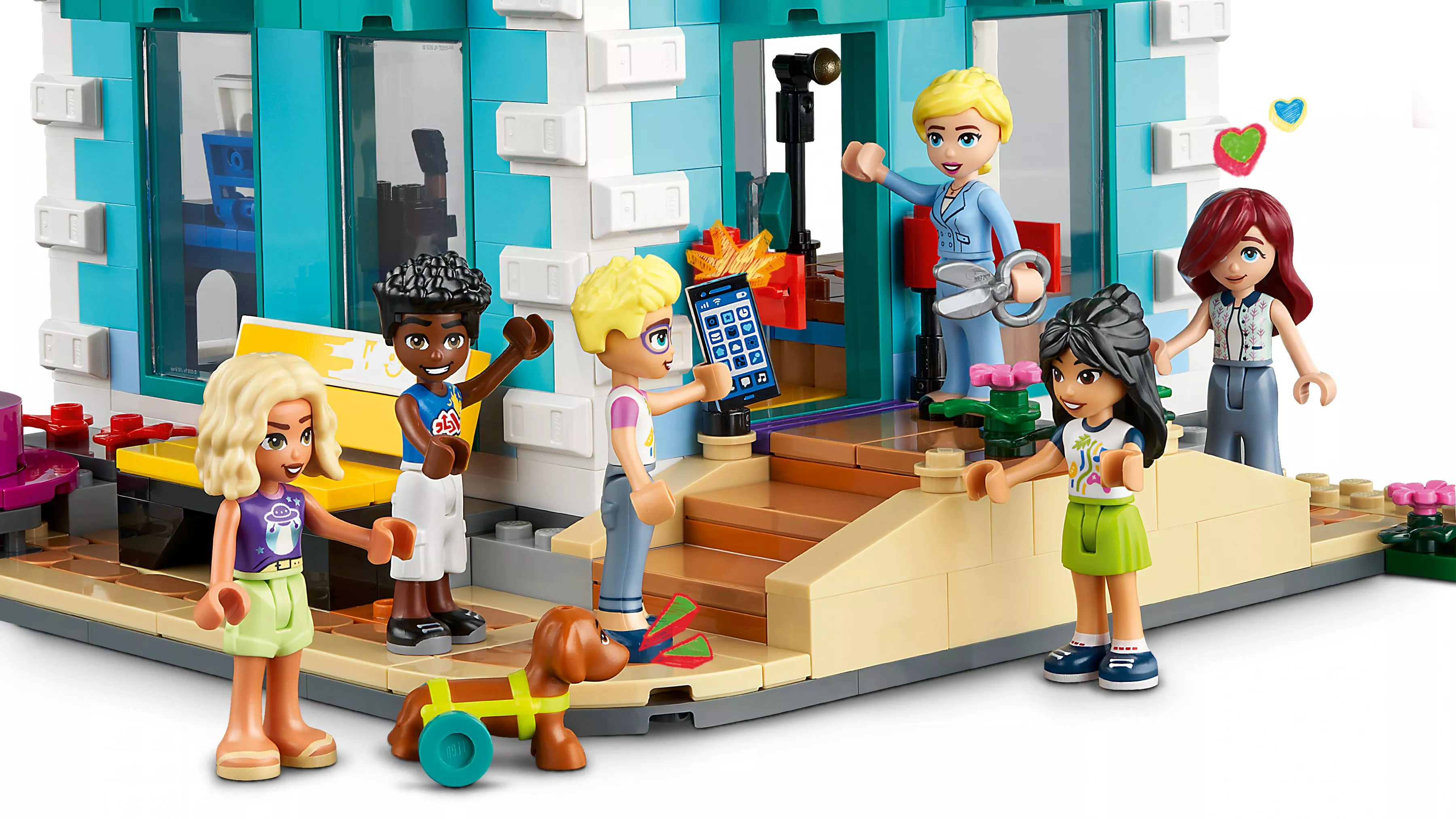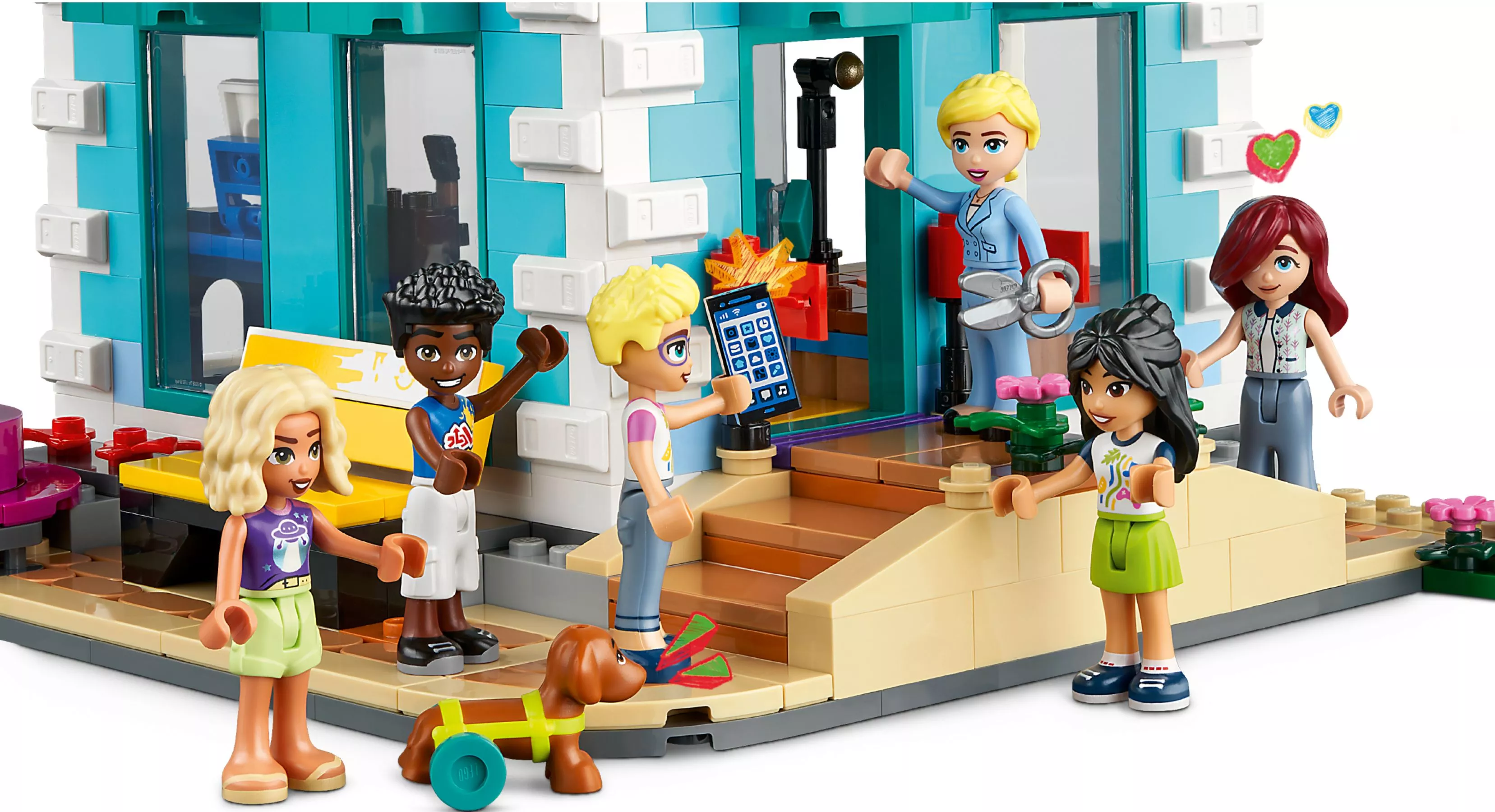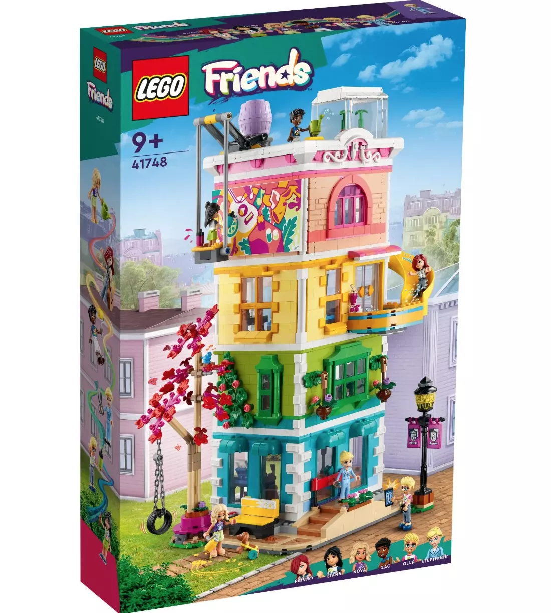 Дети в возрасте от 9 лет и старше могут заняться творчеством в общественном центре, который собирается с помощью набора LEGO Friends Heartlake City Community Center (41748). Уровни игрушечного здания можно переставлять, чтобы дети могли адаптировать модель. Автор песен Пейсли любит тусоваться в музыкальной комнате. Олли проводит время в студии звукозаписи, а артистичная Лиэнн чувствует себя как дома в художественной студии. В зоне отдыха геймеры Нова и Зак могут поиграть в видеоигры. Детям понравится изучать истории дружбы в разных областях. В набор входят 6 мини-куколки, собачка и множество аксессуаров. Этот набор сочетается с набором LEGO Friends «Закусочная Хартлейк-Сити» (41747) для еще более масштабных историй.
