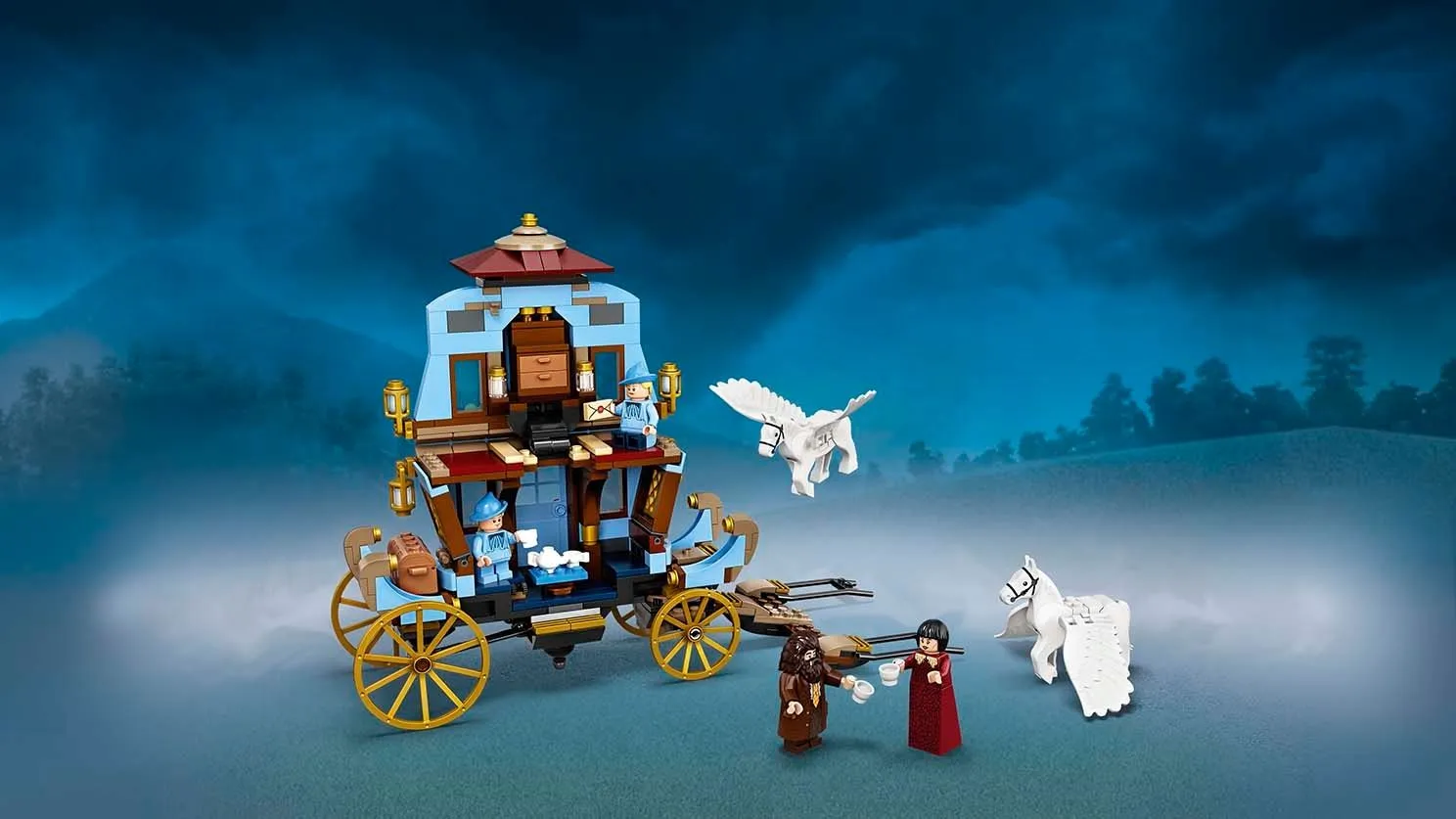 С этим набором вы сможете воссоздать момент прибытия кареты школы Шармбатон в Хогвартс. Великолепная карета, запряженная крылатыми лошадьми, легко трансформируется в двухэтажное жилище, что добавляет разнообразия и интереса в игру.