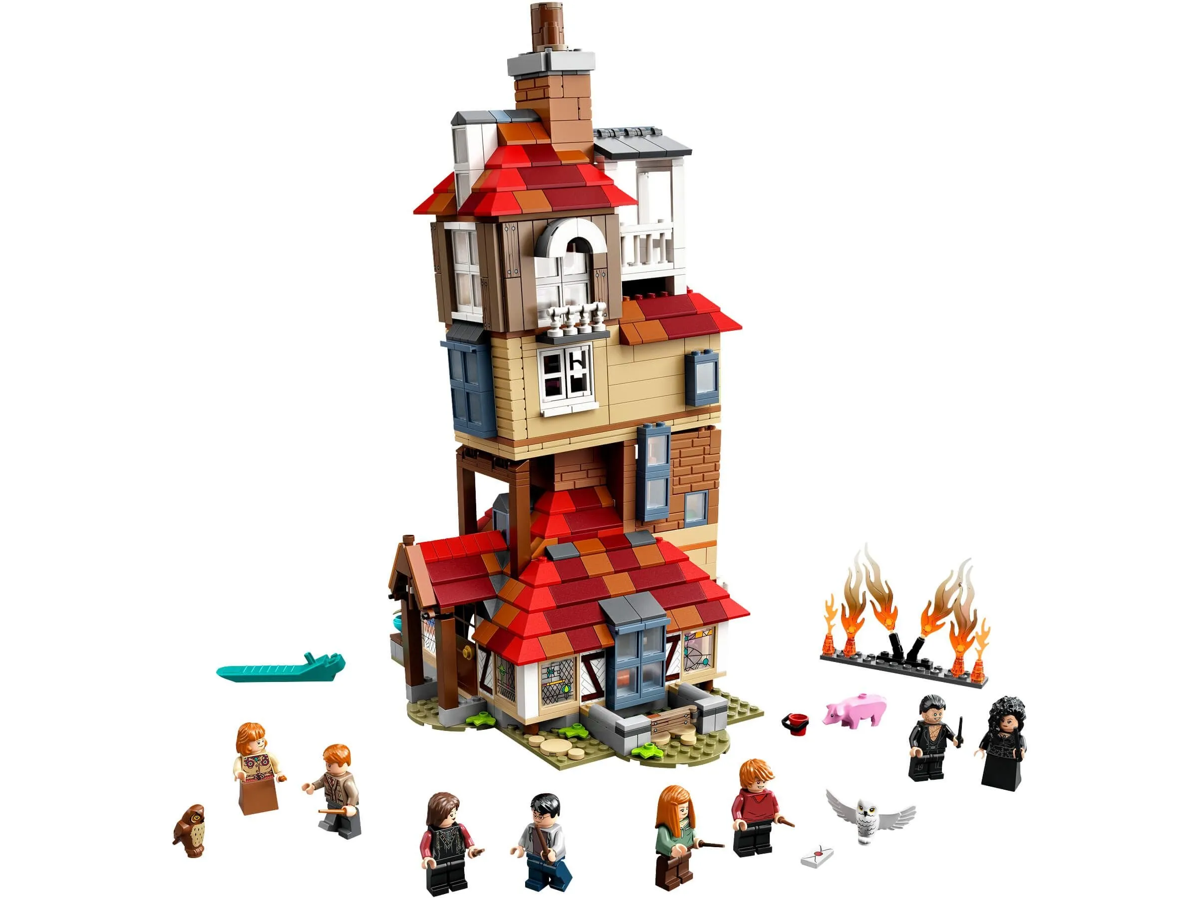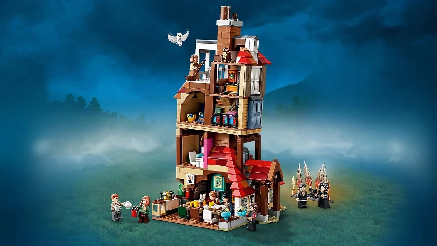 Набор LEGO Harry Potter 75980 Нападение на Нору включает в себя 1047 деталей и предлагает множество элементов для создания детализированной и реалистичной модели дома Уизли. Этот дом выполнен с большим вниманием к деталям и включает в себя несколько комнат, каждую из которых можно узнать по сценам из фильма.