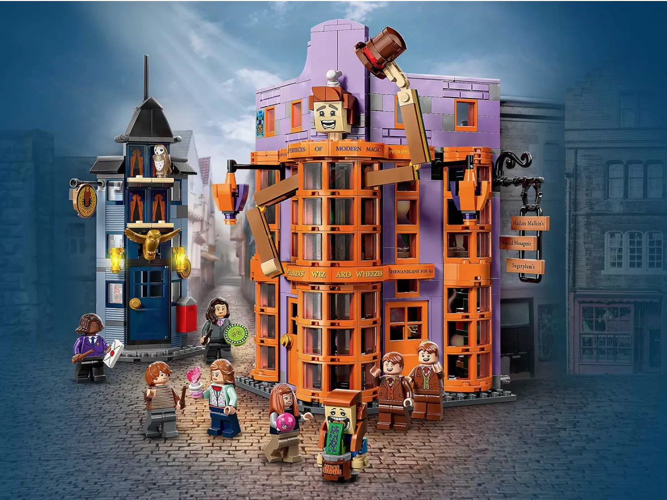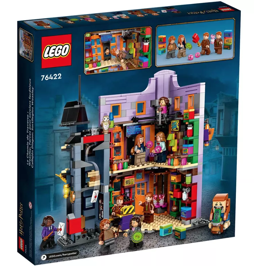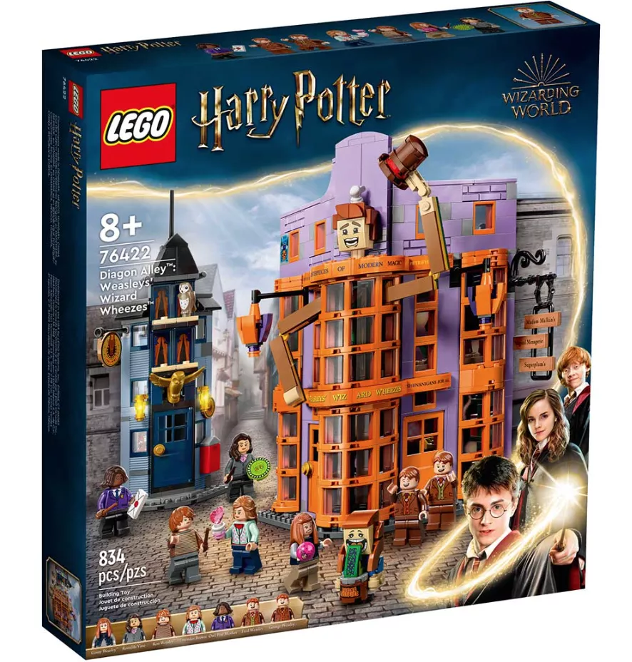 Набор LEGO 76422 включает в себя все необходимое для создания знаменитого магазина Волшебные вредилки, расположенного на Косом переулке. Вы сможете построить трехэтажное здание с ярким фасадом и аутентичными витринами, которые точно воспроизводят внешний вид магазина из фильмов о Гарри Поттере. В набор входят минифигурки Джорджа и Фреда Уизли, а также множество аксессуаров, которые позволят вам разыгрывать сцены из волшебного мира.