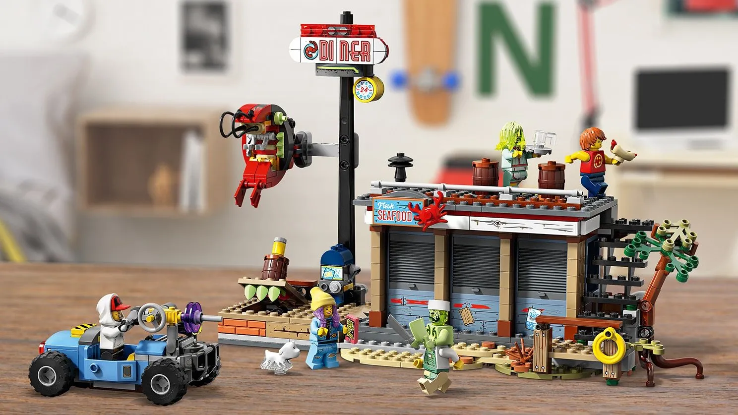 В этом наборе дети встретятся с захватывающим сюжетом, где они должны помочь главным героям - Джеку и Паркеру - спасти город от нападения привидений. Закусочная Shrimp Shack станет ареной для их битвы. Комплект включает в себя здание закусочной с множеством интерактивных элементов, машину для исследований привидений и уникальные фигурки, в том числе шеф-повара, официанта-привидения и двух главных героев с их питомцем-призраком.