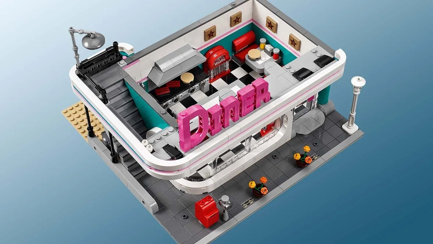 LEGO ICONS 10260 Ресторанчик в центре – это уникальный набор, который перенесет вас в атмосферу классических американских закусочных. Этот детализированный набор станет ярким дополнением вашей коллекции LEGO.