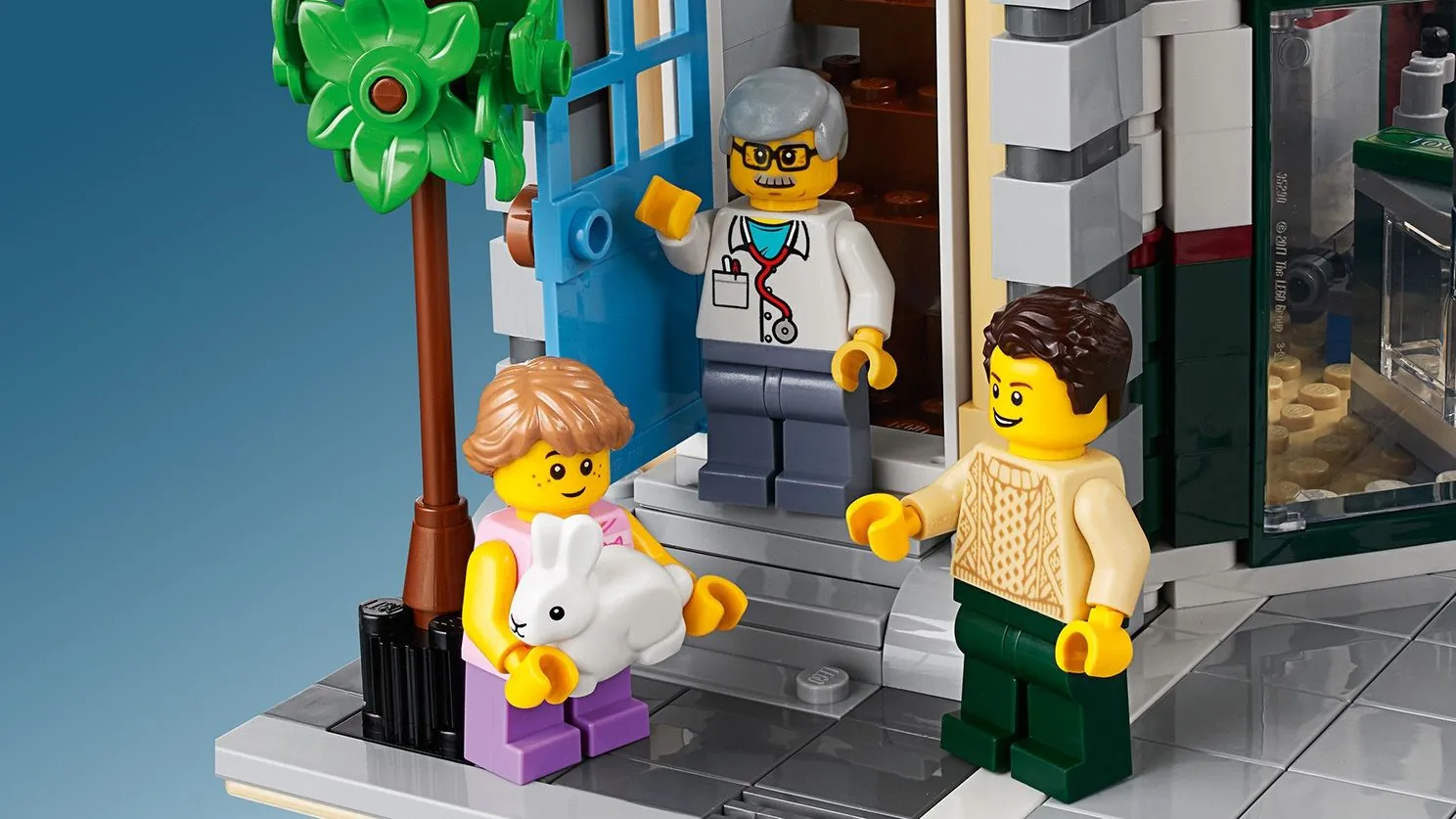 Здание состоит из трех этажей, каждый из которых имеет свои уникальные детали. На первом этаже располагается автосервис с подъемником для машин и множеством инструментов. Здесь можно обслуживать автомобили и создавать разнообразные игровые ситуации. Второй этаж занят ветеринарной клиникой с кабинетом врача, приемной и медицинскими инструментами для помощи животным. На третьем этаже находится уютная квартира с кухней, спальней и гостиной, где можно найти множество мелких деталей, создающих атмосферу домашнего уюта.