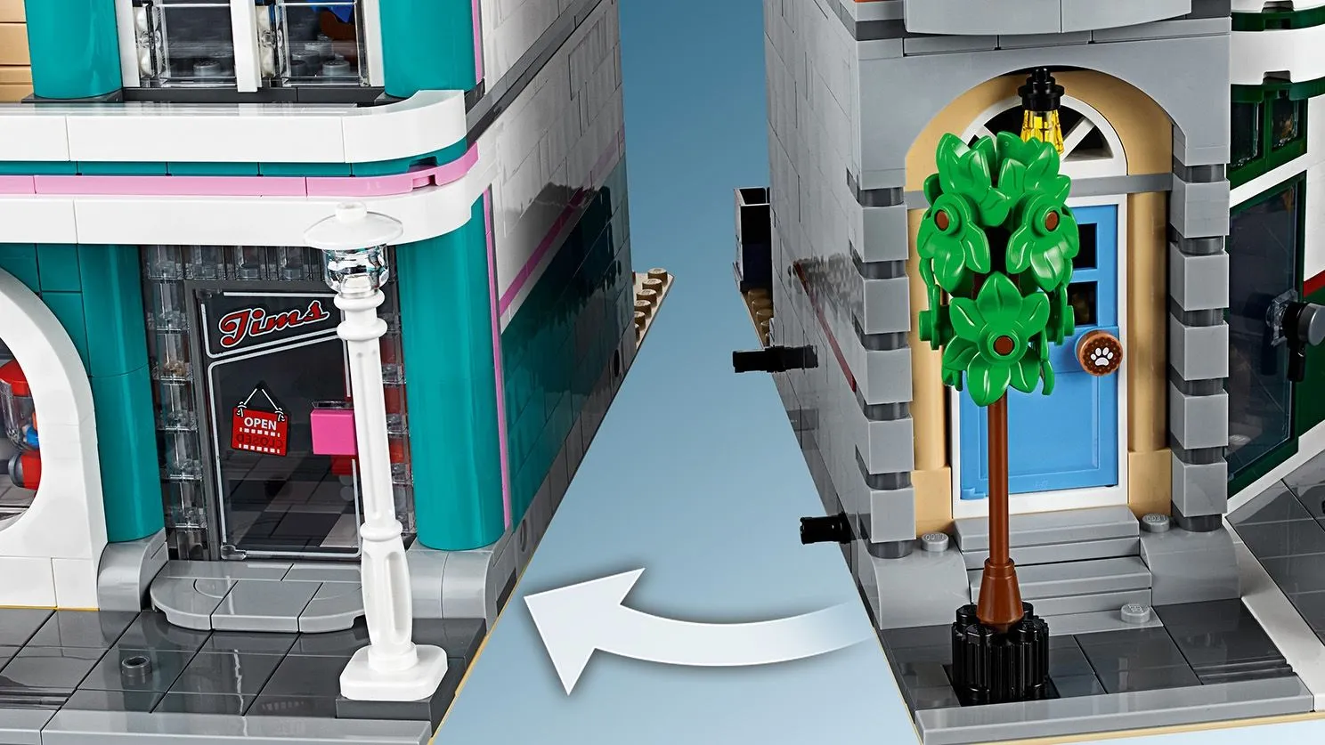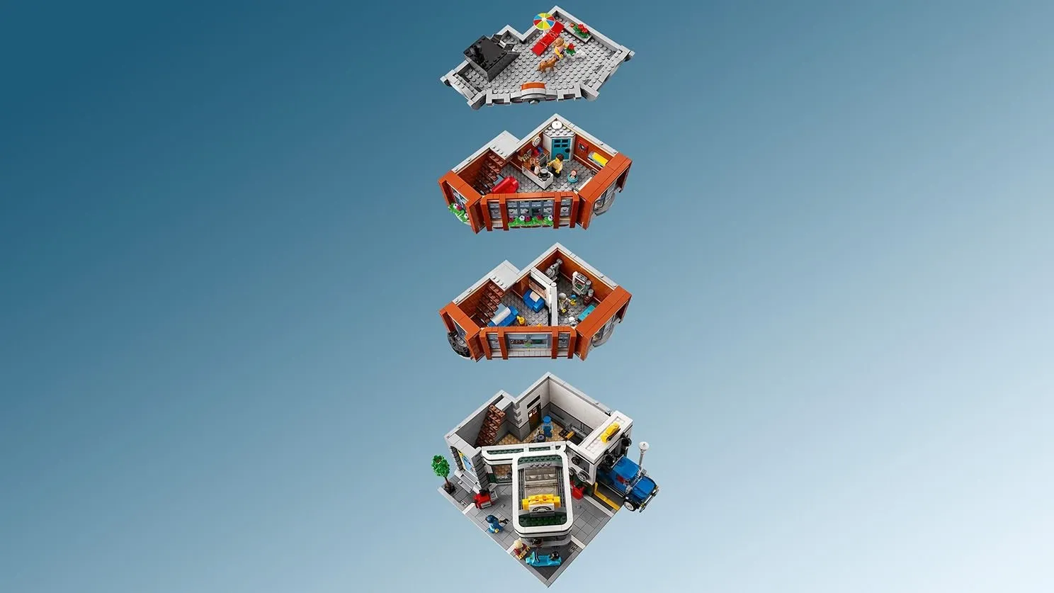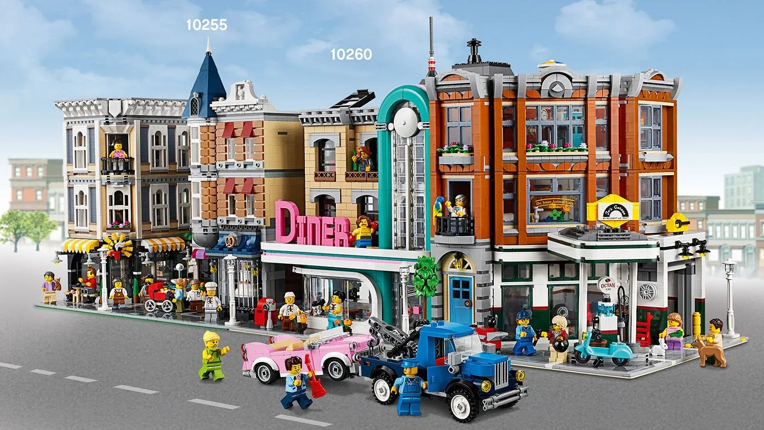 Создайте свою уникальную улицу с гаражом, клиникой и квартирой, наслаждайтесь продуманными деталями и воплотите свои строительные фантазии вместе с LEGO ICONS 10264 Гараж на углу!