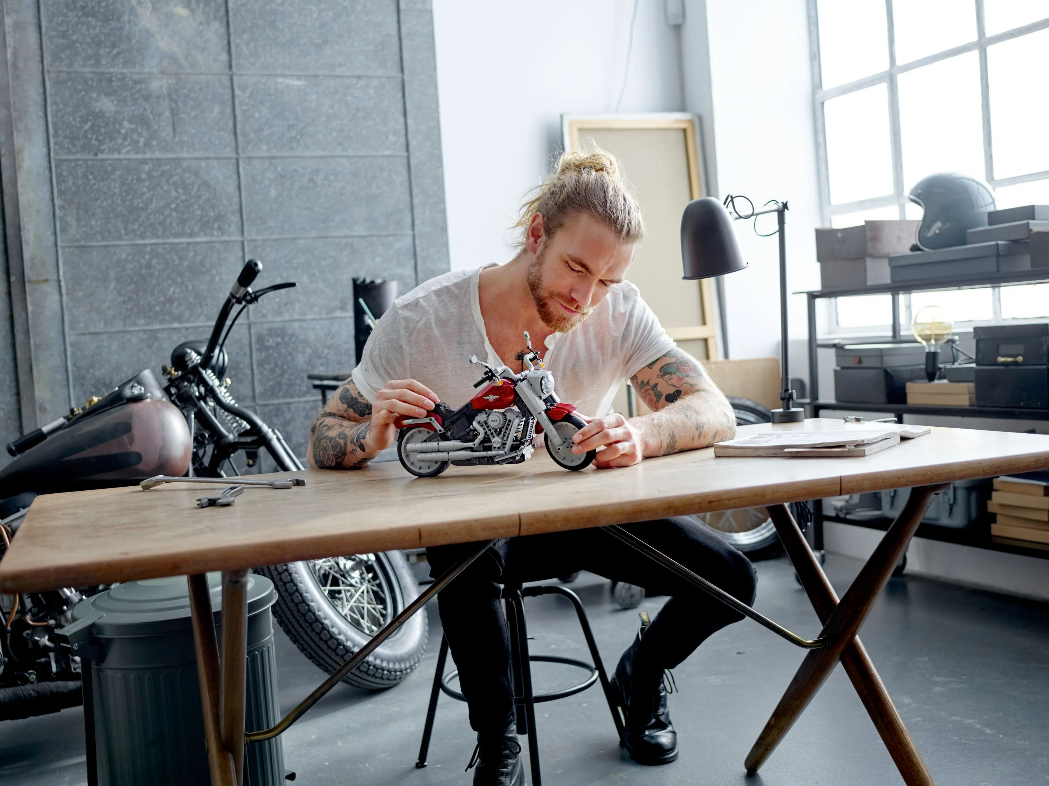 Модель мотоцикла Harley-Davidson Fat Boy из LEGO точно передает узнаваемый дизайн настоящего мотоцикла с его массивными формами и характерными деталями. Собранная модель станет прекрасным украшением любого интерьера и позволит насладиться процессом создания настоящего произведения искусства из LEGO.