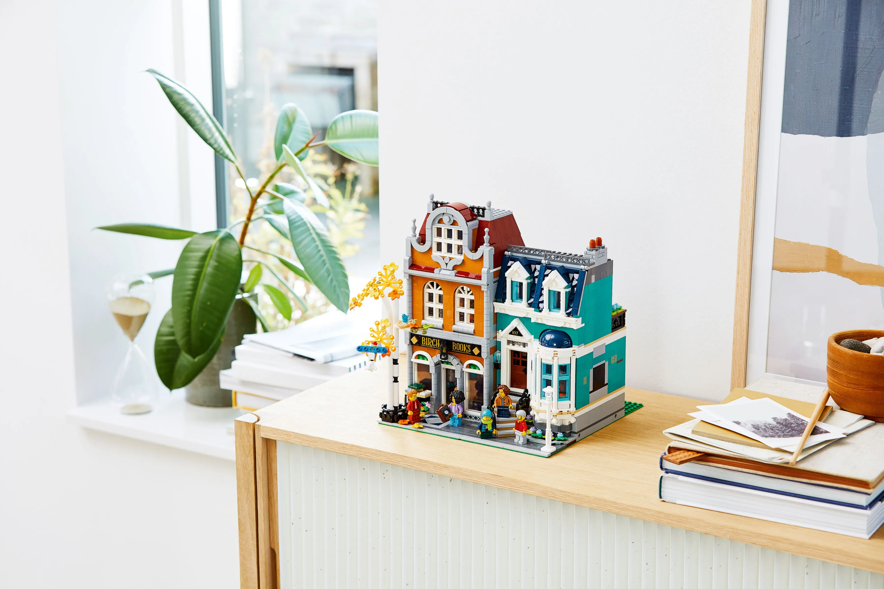 Набор LEGO 10270 предлагает вам собрать великолепный книжный магазин в стиле европейской архитектуры, а также соседний дом. Эти здания имеют множество продуманных деталей и элементов, которые создают уютную атмосферу маленького городка и позволяют вам разыгрывать разнообразные сцены из жизни его жителей.