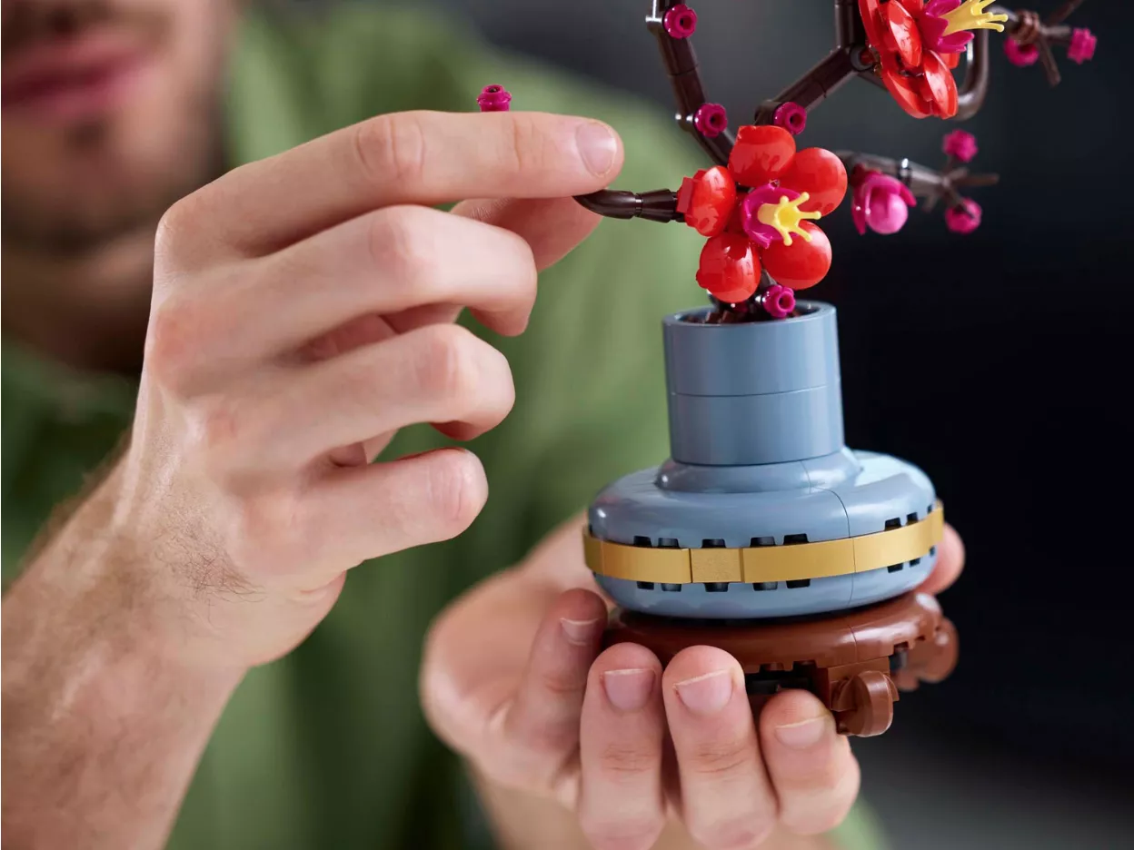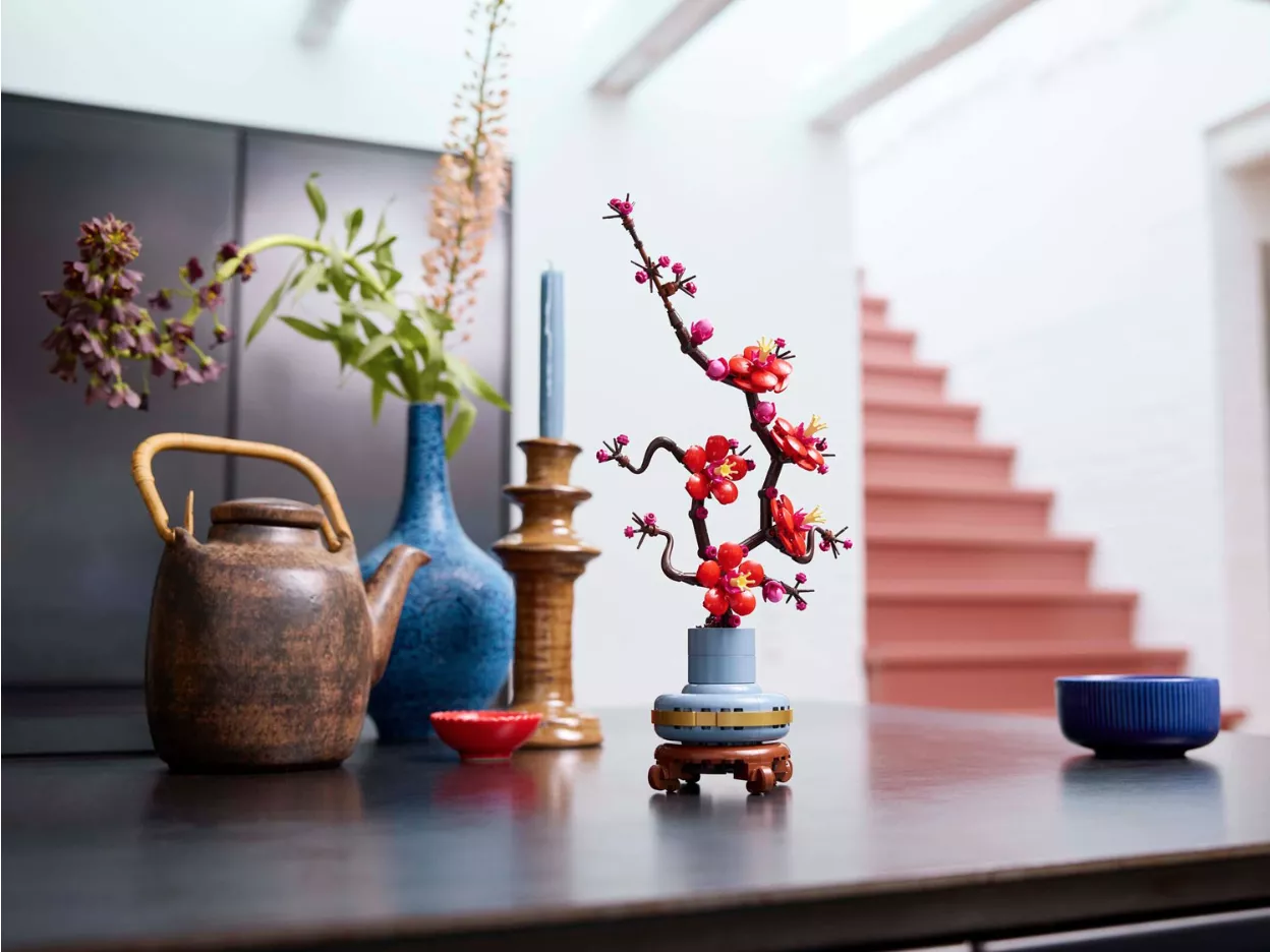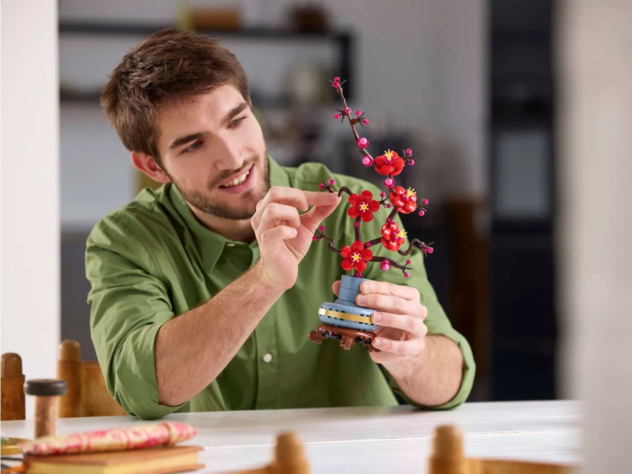 • Цветочный конструктор для взрослых: отдохните или присоединитесь к друзьям и семье, чтобы расслабиться и заняться конструированием с помощью проекта по созданию цветущей сливы LEGO Icons.