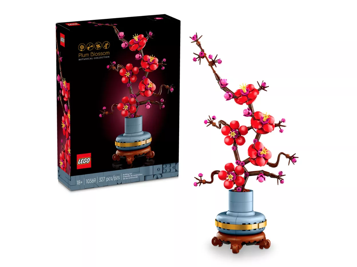 • Творческий конструктор для любителей растений: в этот креативный набор входит все необходимое для создания цветка сливы, а также пастельно-голубого горшка с золотой полосой и подставкой, имитирующей древесину.